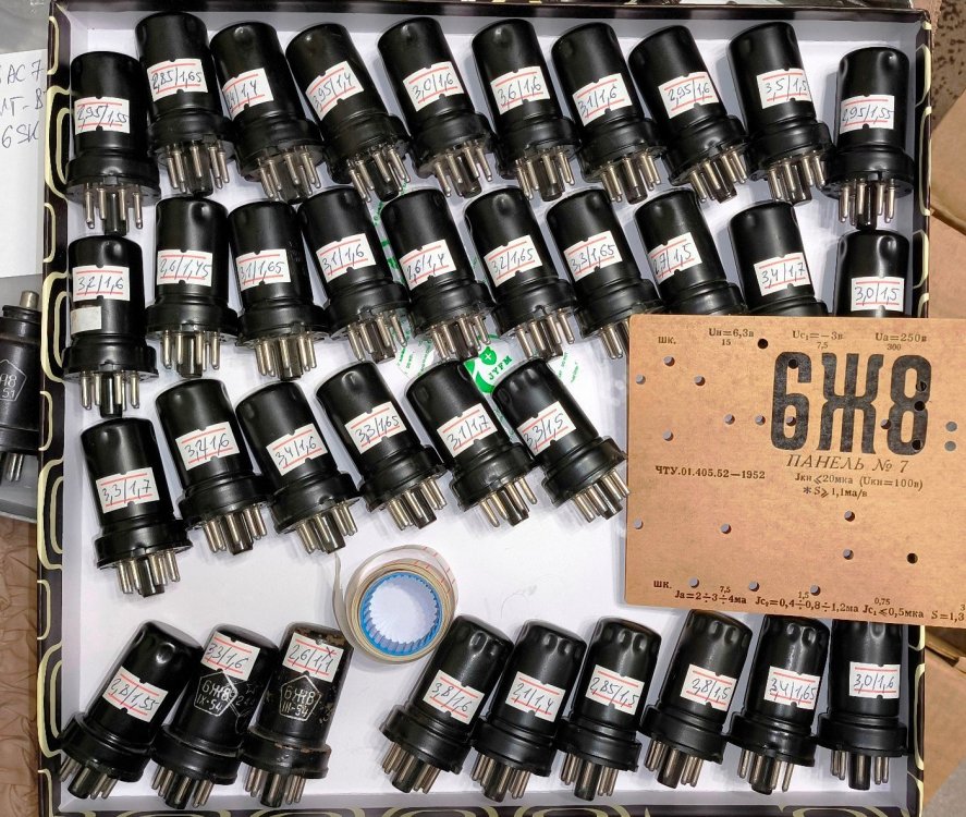 + несколько железных октальных 6К... 11. 6Ж8. Новые, проверенные на Л1-3. Ток/крутизна на фото. Сверху вниз: 26 шт. 70-72 г.в. по 200 руб. 6 шт. 62-67 г. в. по 300 руб. 3 шт. 54-56 г.в. по 300 руб. (полноценных 2 лампы)