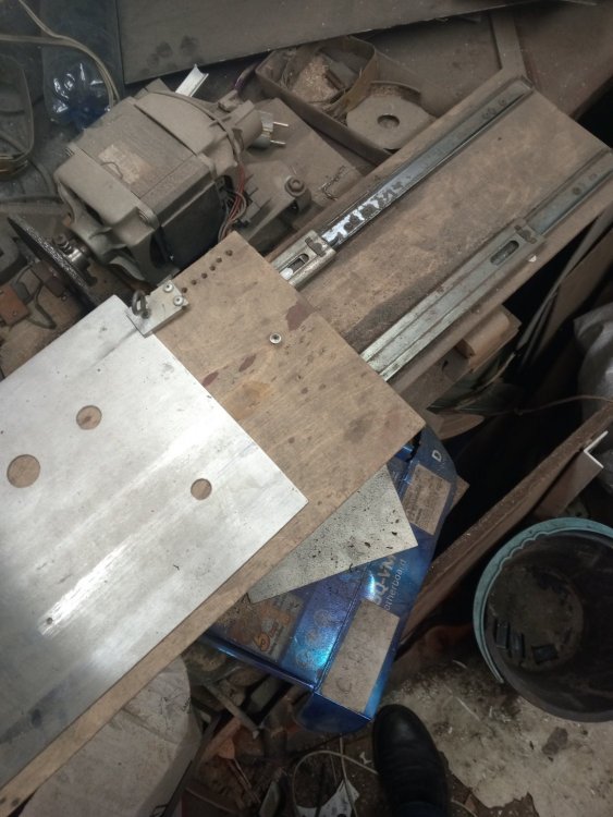 Собственно вот . Двигатель от стиральной . Стол на направляющих от мебели. Прим 50см ход . Ручка громкости ,это движение абразива вперёд назад.он сделан был быстрей, быстрей, из .... и палок , лет 8-10 назад,не люфтит.работает. -