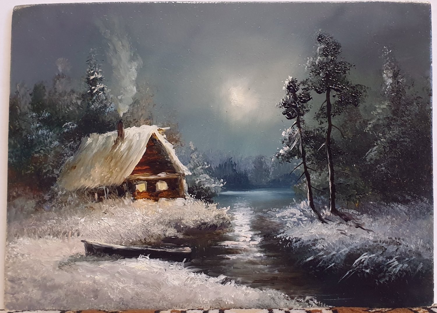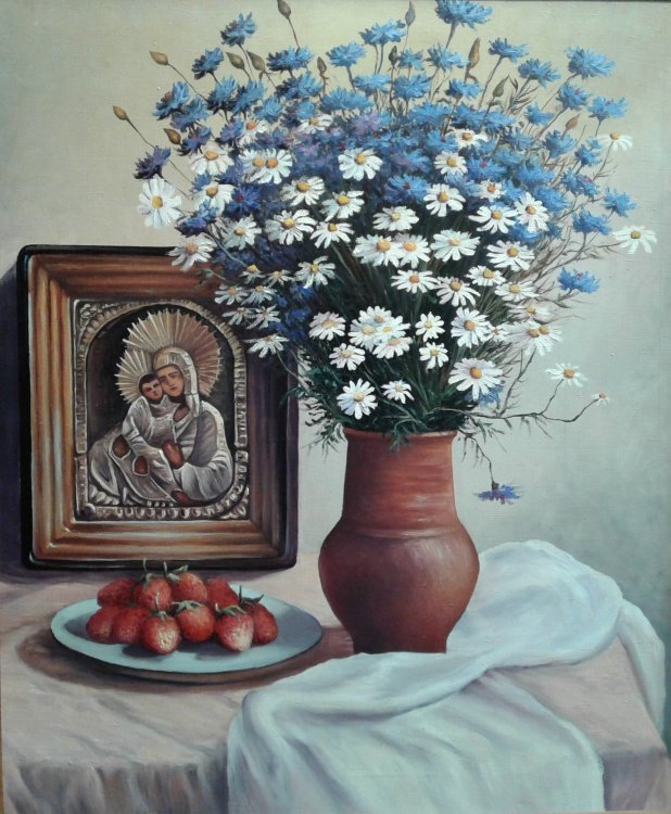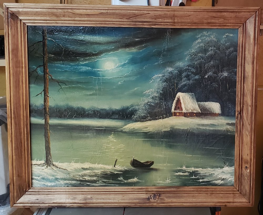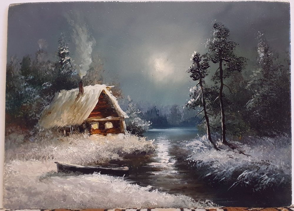 Потихоньку начал приводить в порядок имеющиеся фото своих работ, которые в своё время успел сфотографировать. Одна десятая или двадцатая из всего написанного с 80х наверное есть на этих снимках. Никогда не вёл счёт по отдельным сюжетам и их повторам, да и фотографировать начал поздновато , лишь для того, что бы потом по фото освежить память и сделать на продажу повторы, или использовать какие хорошие фрагменты для создания нового сюжета. Свободными копиями известных мастеров тоже не брезговал, ходовые сюжеты частенько шли в продажу, а это мой хлеб, чёрный, белый, мягкий или жёсткий - не имело значения. Ремесленник он и есть ремесленник ....Чем бы не занимался мимоходом помимо картин, сама жизнь возвращала меня к ним, рано или позднее, но всегда..... ___________________________________________________________ 01. Лунные ночи 1990г 45х60 ----------------------------------------------------------- 02. Вечер на реке 1992г 40х60 ------------------------------------------------ 03. Зимний вечер 2017г 25х30 ---------------------------------------------- 04. В лесной глуши 2016г 18х24 ---------------------------------------------- 05. Ночной путник 2017г 18х24 ------------------------------------ 06. Москва-река под Можайском 2005г 30х70 (Реальное место, этюды + фото) -------------------------------------------- -------- -------- 07. Натюрморт с иконой 2005г 66х79 ----------------------------------------- 08. Натюрморт с декоративными подсолнухами 2009 40х50 -------------------------------------------------------------------- ---- 09. Зимка 2013г 25х50 --------------------------- ---- 10. После рыбалки 2013г 40х50 ---------------------------------- --- 11. Март 2008г 30х40 ----------------------- 12. Река Вязьма, д.Городня 2004г 13х18 (Реальное место) ------------------------------------------ ----- 13. Сказка из детских снов 2024г 13х18 --------------------------------------------- ------ 14. Тихая заводь 2011г 60х90 --------------------------------- Продолжение будет в других частях.2 points