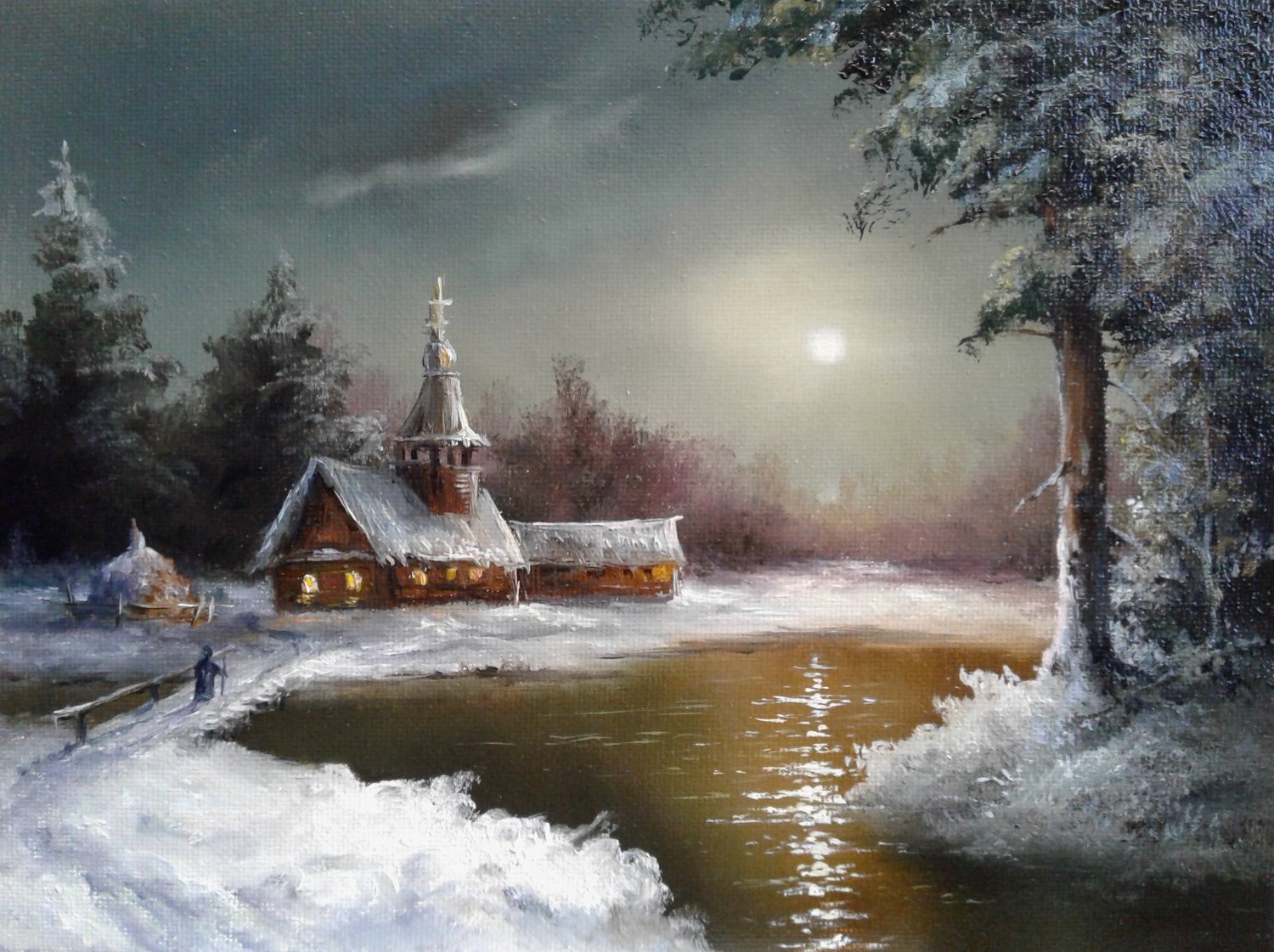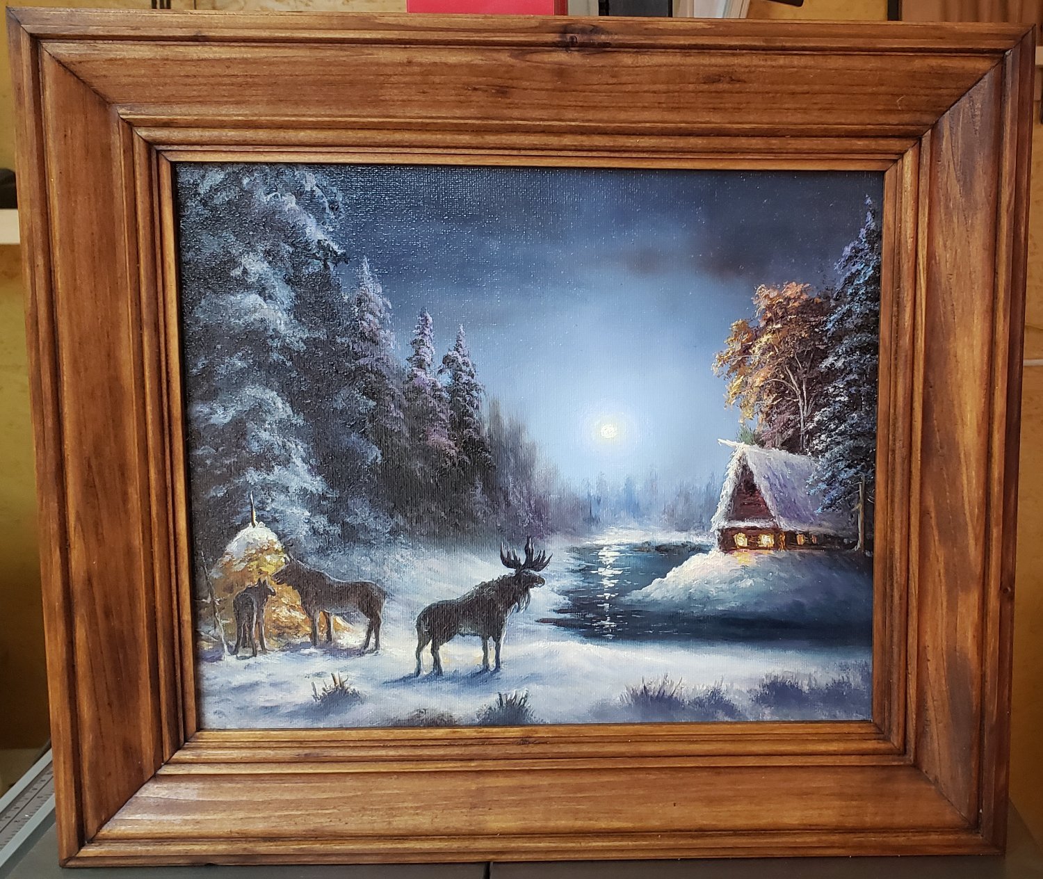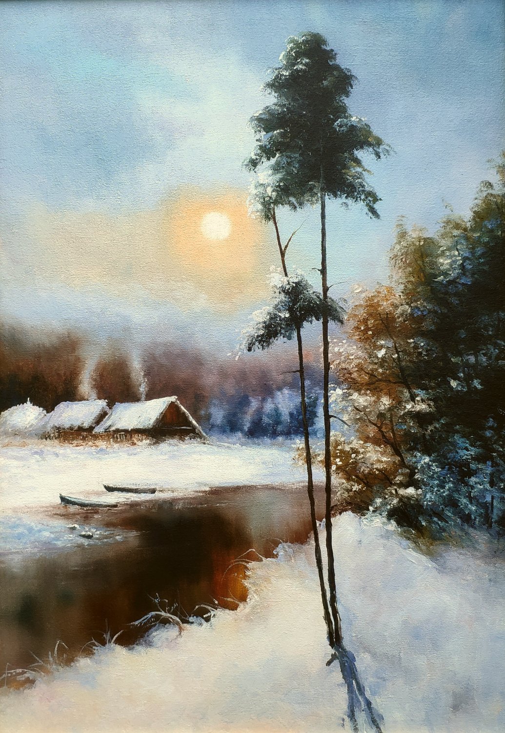 Потихоньку начал приводить в порядок имеющиеся фото своих работ, которые в своё время успел сфотографировать. Одна десятая или двадцатая из всего написанного с 80х наверное есть на этих снимках. Никогда не вёл счёт по отдельным сюжетам и их повторам, да и фотографировать начал поздновато , лишь для того, что бы потом по фото освежить память и сделать на продажу повторы, или использовать какие хорошие фрагменты для создания нового сюжета. Свободными копиями известных мастеров тоже не брезговал, ходовые сюжеты частенько шли в продажу, а это мой хлеб, чёрный, белый, мягкий или жёсткий - не имело значения. Ремесленник он и есть ремесленник ....Чем бы не занимался мимоходом помимо картин, сама жизнь возвращала меня к ним, рано или позднее, но всегда..... ___________________________________________________________ 01. Лунные ночи 1990г 45х60 ----------------------------------------------------------- 02. Вечер на реке 1992г 40х60 ------------------------------------------------ 03. Зимний вечер 2017г 25х30 ---------------------------------------------- 04. В лесной глуши 2016г 18х24 ---------------------------------------------- 05. Ночной путник 2017г 18х24 ------------------------------------ 06. Москва-река под Можайском 2005г 30х70 (Реальное место, этюды + фото) -------------------------------------------- -------- -------- 07. Натюрморт с иконой 2005г 66х79 ----------------------------------------- 08. Натюрморт с декоративными подсолнухами 2009 40х50 -------------------------------------------------------------------- ---- 09. Зимка 2013г 25х50 --------------------------- ---- 10. После рыбалки 2013г 40х50 ---------------------------------- --- 11. Март 2008г 30х40 ----------------------- 12. Река Вязьма, д.Городня 2004г 13х18 (Реальное место) ------------------------------------------ ----- 13. Сказка из детских снов 2024г 13х18 --------------------------------------------- ------ 14. Тихая заводь 2011г 60х90 --------------------------------- Продолжение будет в других частях.2 points