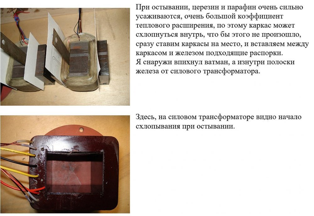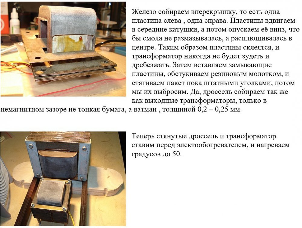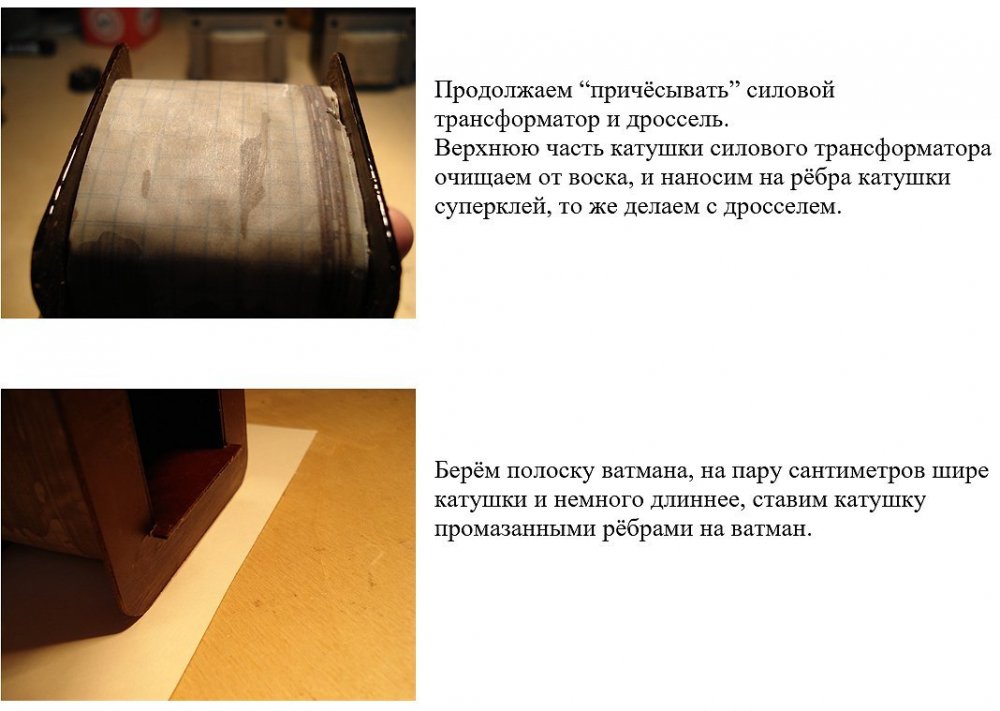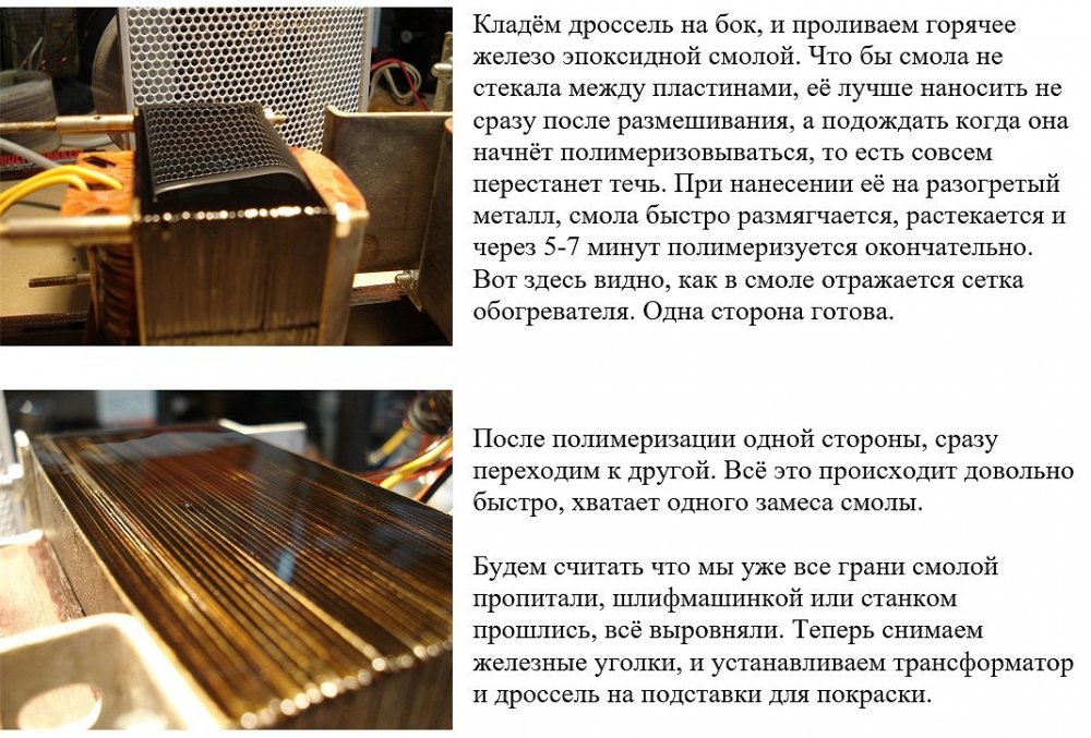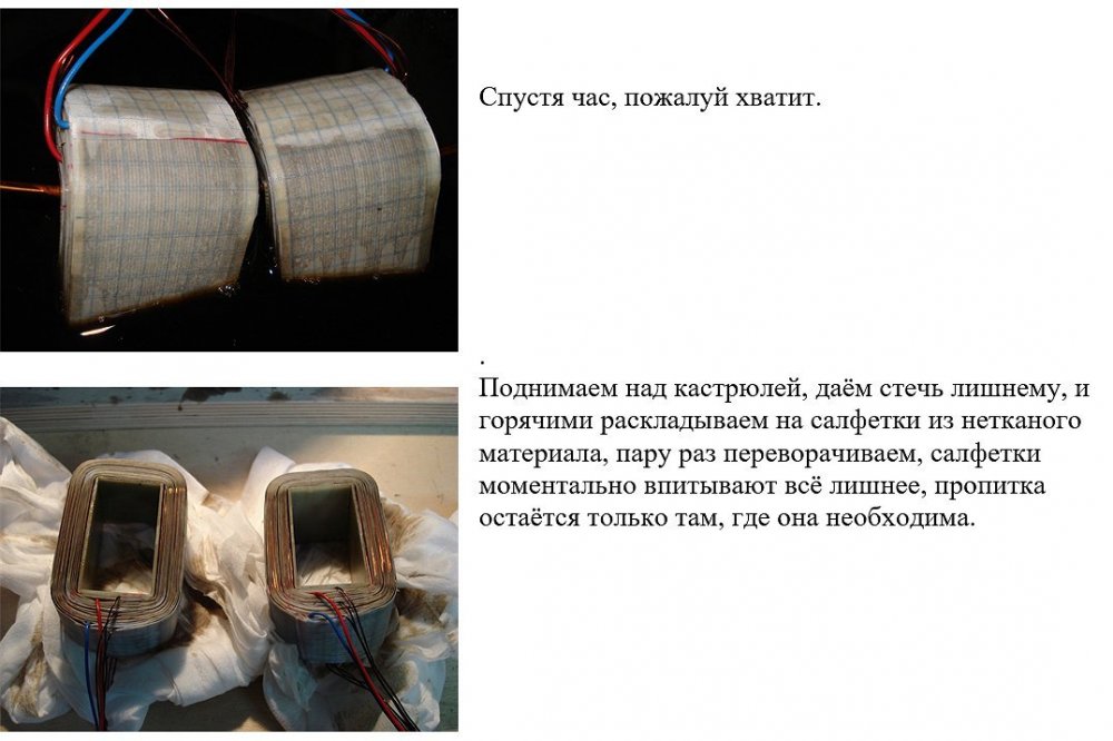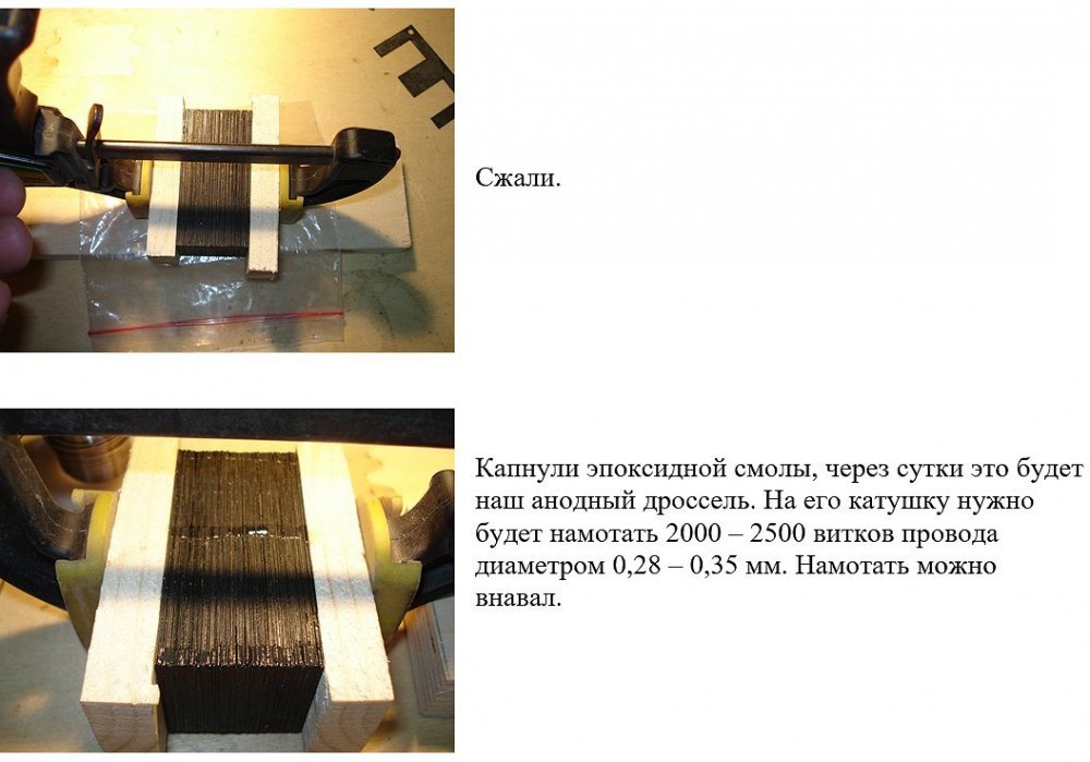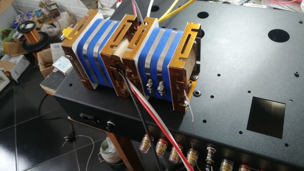 В общем новости по проекту. Схема выпрямителя анодного для выходного каскада определилась полностью - после моста будет стоять кап К75-15 на 10мкф 3кв, после дроссель с зазором 0,3мм - его индуктивность 1,3гн, после - кап К75-40А на 100мкф 3кв ->дроссель на 1,8гн (зазор 0,15мм) -> К75-40А 100мкф 3кв. Напряжение на нагрузке 2,8кв, пульсации переменной составляющей 100гц порядка 7-10мв. Также "причесал" дроссели - сделал для них нормальные колодки. Дроссели склеены эпоксидкой по зазору - теперь не издают ни звука. Ну и доделал накальники (напаял наконечники на выводы вторички - там 3 по 2,1мм провода если что намотано) и пробно накалил обе лампы. Напряжение под нагрузкой 10,5в. Далее буду экспериментировать с накалом постоянкой.13 points