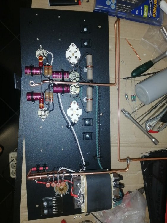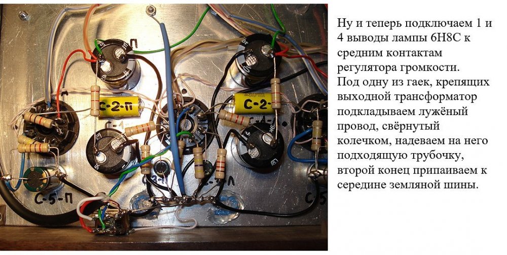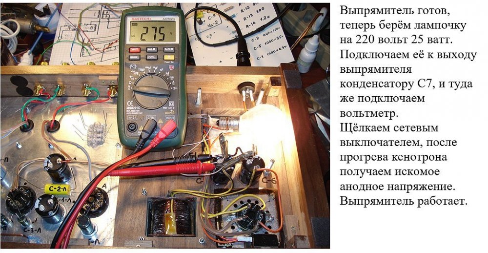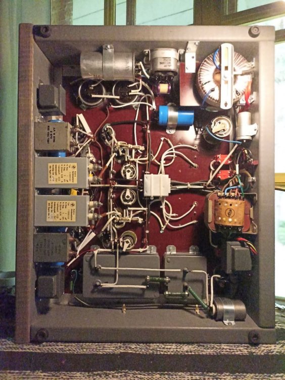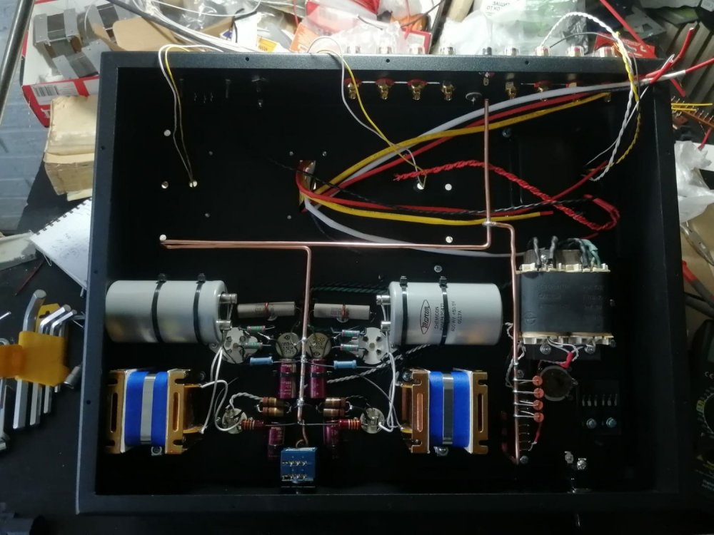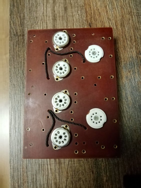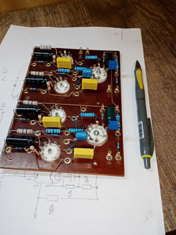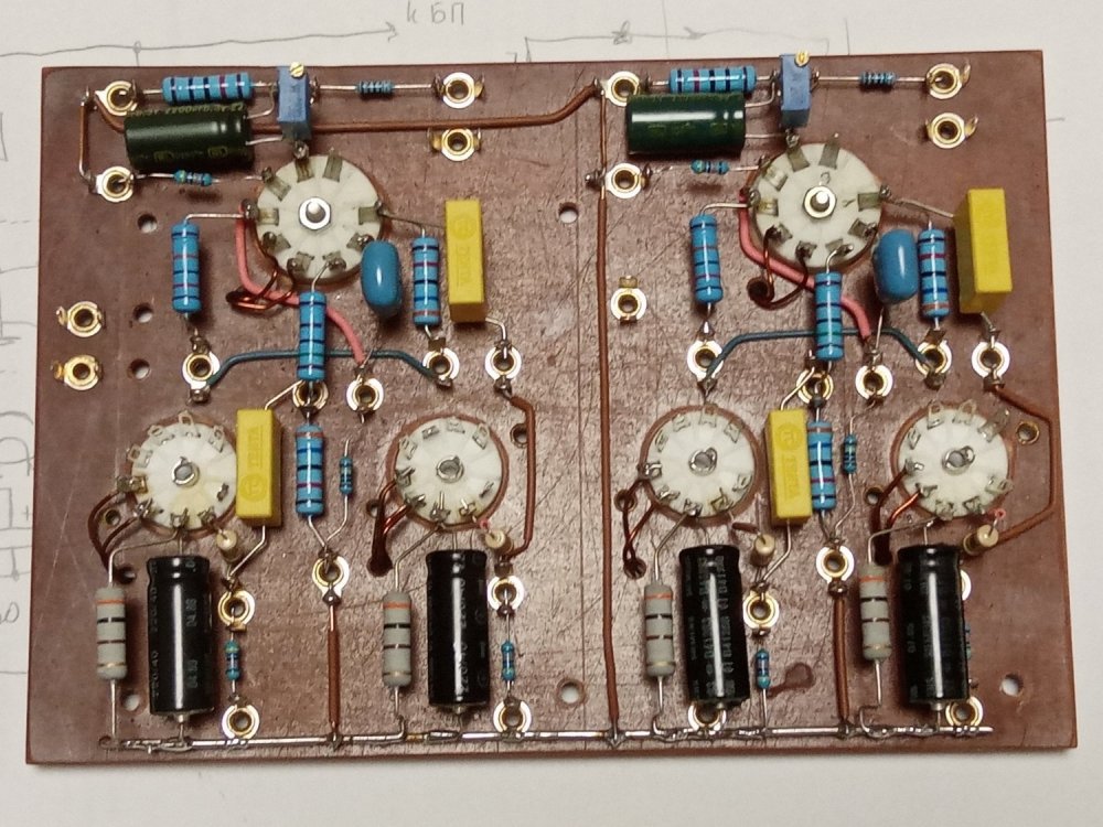 Вести с верфей. Промежуточные итоги. Усилитель собран и уже трудится второй день. На днях ожидаю прибытия 2А3, а пока слушаю с Sylvania 6V6G. Кстати, сделал так, что усилитель легко принимает многие выходные лампы, естественно с оперативной подстройкой смещения. Можно ставить 45, 2A3, 6V6, 6F6, 6L6, KT66, 42 и 807 c переходниками. Мне это показалось удобным и потому врезал два комплекта панелек (октальные и UX4). Звучанием доволен и жду прямонакалы! Провёл некоторую качественную модернизацию, как и планировал, даже больше - сделал индивидуальное питание для входного каскада, поканальные СLC фильтры. В основном использую неполярные бумажные ёмкости, электролитов минимум, и те “звучащие” и проверенные практикой. Выпрямление смещения на газотроне 83, анодное - 872. Чуть повозился, чтобы при таком малом токе в ОППВ зажглись обе половинки. Анодное получил даже больше, чем планировал по расчётам (308-310В для выходного каскада и 312-314В для входного - и это для бестрансформаторного ОППВ) чем очень доволен. В общем, компромиссов всё меньше и меньше.14 points
