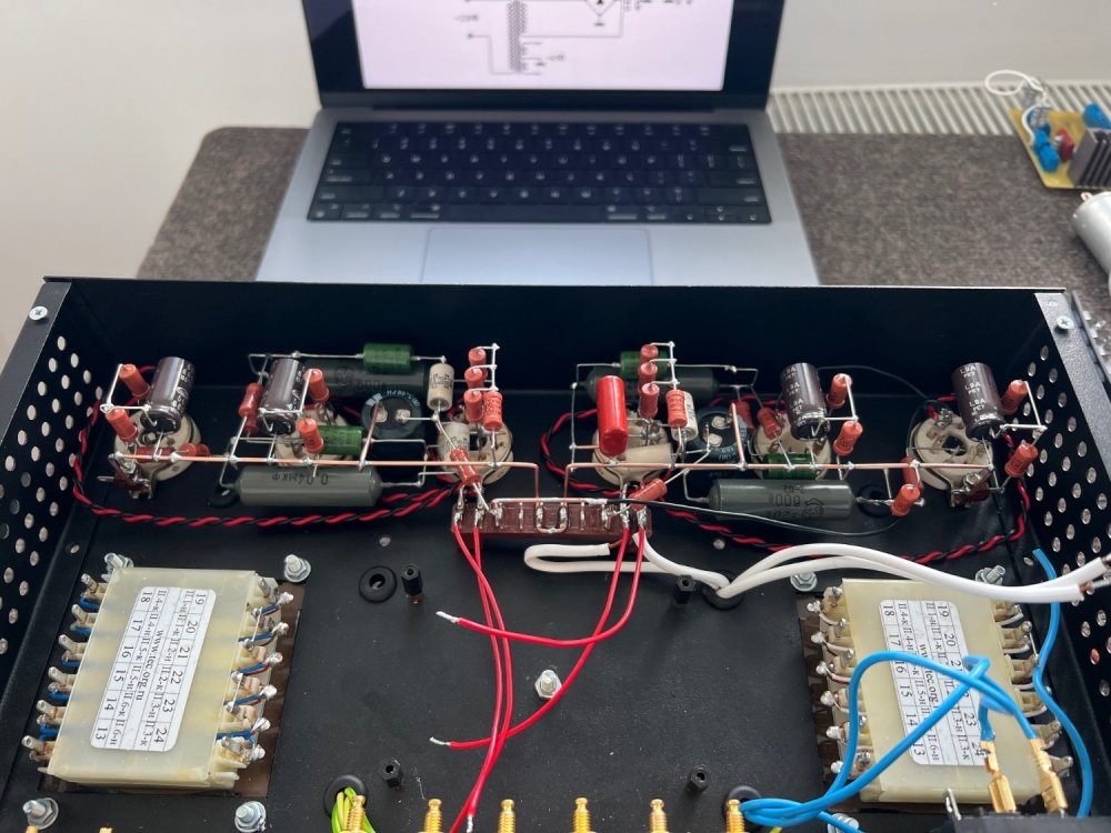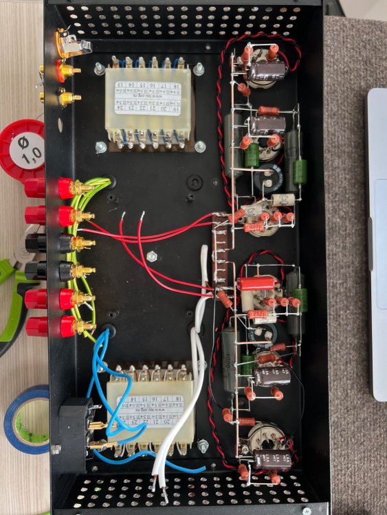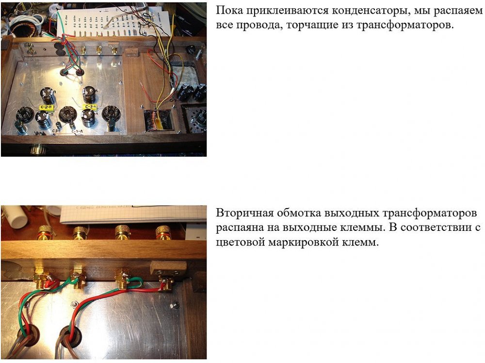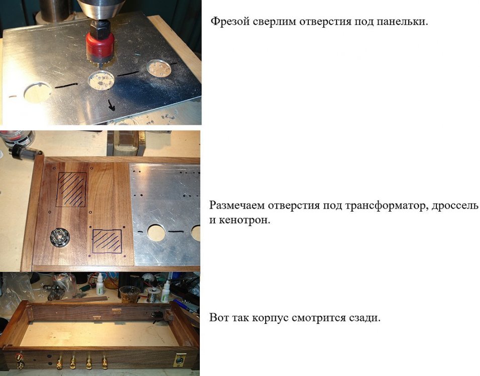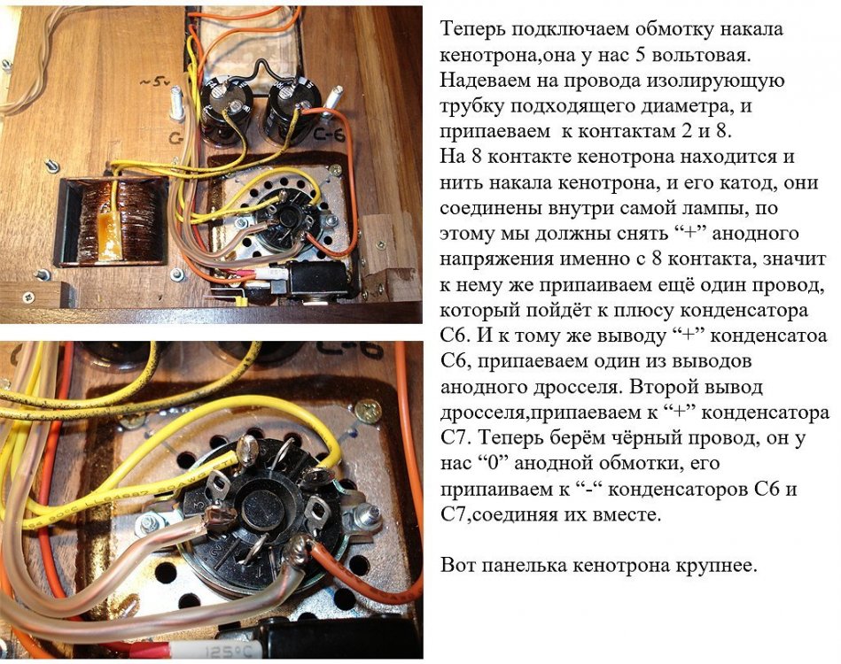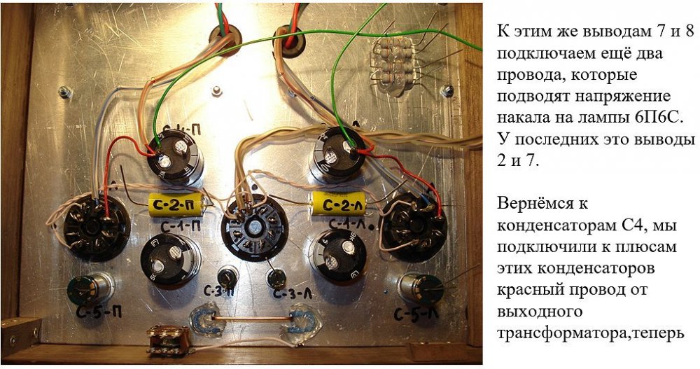 Вести с верфей. Промежуточные итоги. Усилитель собран и уже трудится второй день. На днях ожидаю прибытия 2А3, а пока слушаю с Sylvania 6V6G. Кстати, сделал так, что усилитель легко принимает многие выходные лампы, естественно с оперативной подстройкой смещения. Можно ставить 45, 2A3, 6V6, 6F6, 6L6, KT66, 42 и 807 c переходниками. Мне это показалось удобным и потому врезал два комплекта панелек (октальные и UX4). Звучанием доволен и жду прямонакалы! Провёл некоторую качественную модернизацию, как и планировал, даже больше - сделал индивидуальное питание для входного каскада, поканальные СLC фильтры. В основном использую неполярные бумажные ёмкости, электролитов минимум, и те “звучащие” и проверенные практикой. Выпрямление смещения на газотроне 83, анодное - 872. Чуть повозился, чтобы при таком малом токе в ОППВ зажглись обе половинки. Анодное получил даже больше, чем планировал по расчётам (308-310В для выходного каскада и 312-314В для входного - и это для бестрансформаторного ОППВ) чем очень доволен. В общем, компромиссов всё меньше и меньше.14 points