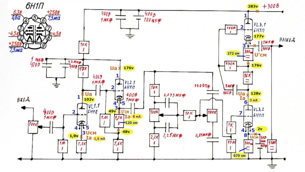 Созданию данного устройства поспособствовало желание получить усилитель для наушников/темброблок в одном флаконе, по итогу было решено сделать 3 каскада усиления, с выходом на МЮ повторителях, для «раскачки» нагрузки, с возможностью подстройки звучания под «свои уши», помимо возможности установки ламп 6Н1П, была возможность установки 6Н5П, которые по итогу и были установлены, а данной схеме они понравились куда больше 6Н1П, трудностью было разместить все в компактном корпусе, особенно область навесного монтажа, к слову с фоном у данного устройства проблем нет от слова совсем.9 points