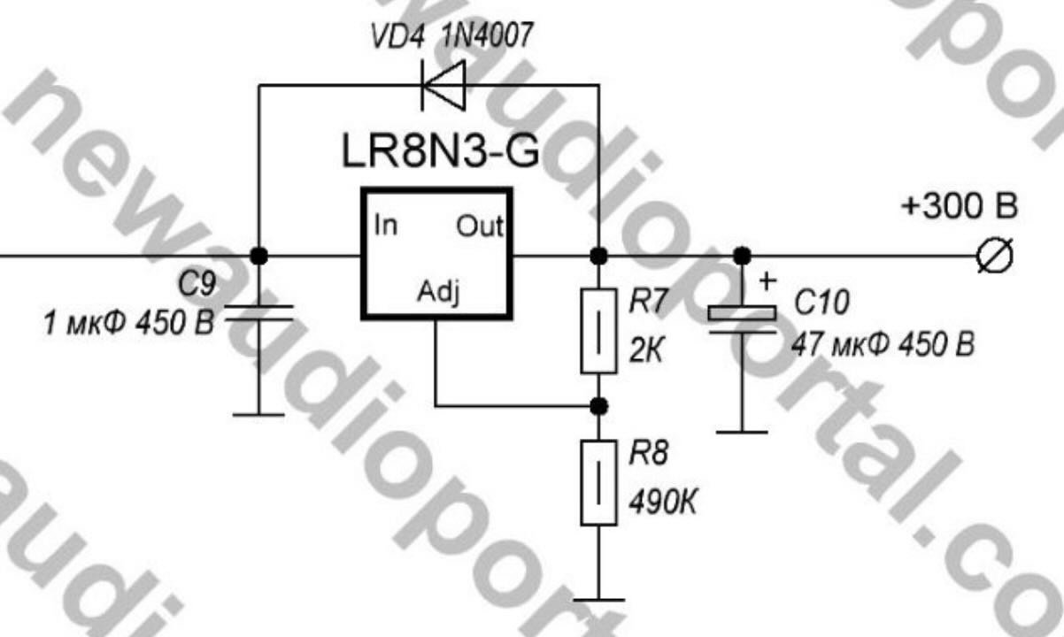 Я пробовал в фонокорректоре поставить на каждую лампу LR8N3 по такой схеме: Микросхемы были из ЧиДа, за их оригинальность ручаться трудно. Напряжение держали исправно при соблюдении тока по документации, защита от КЗ срабатывала, и защита от превышения тока тоже срабатывала. На ток 13 мА запаивал два стабилизатора параллельно, чтобы они исправно запускались. Но при этом какой-то лишний фон по анодному питанию все равно пролезал. В итоге я их убрал, поставил обычный "электронный дроссель" на полевике на весь канал и R-C цепочки между каскадами. Может быть нужно параллельно R8 конденсатор подцепить, как в случае с LM317, но я не экспереминтировал.