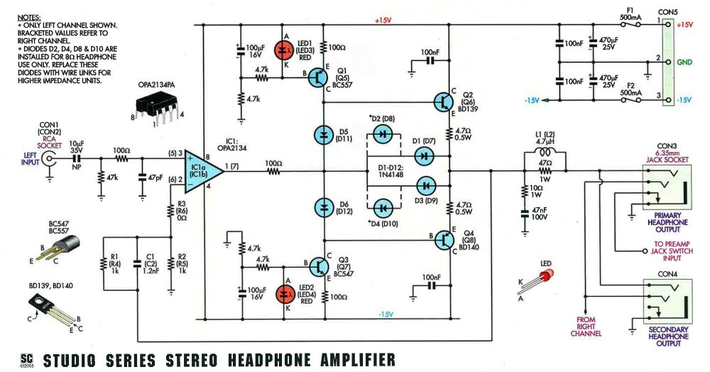 Если есть желание собрать усилитель для наушников, то можно обратиться к известной по разным вариациям простой схеме. Здесь я привожу описание и схему студийного усилителя для наушников Питера Смита из журнала Silicon Chip за ноябрь 2005-го года. Усилитель способен работать на нагрузку от 8 до 600 Ом, обладает ровной АЧХ и малым уровнем шума. Схема усилителя для наушников: Полное описание в пдф: studio_series_headphone_amp.pdf Так же нашел у себя какую-то из промежуточных версий печатной платы для этого усилителя: studio_series_stereo_headphone_amplifier_by_Valinor.lay6.zip