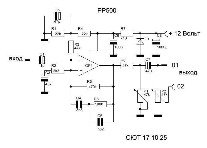 Вот полная схема этого чуда, крутилки, слава Богу, только уровни на выходах меняют, для чего - неведомо: Думаю, если отключить Р1, уменьшить R8 до двух кОм, увеличить R5 до 1 мОм всё станет очень близко к РИАА, и не надо будет лохматить бабушку...