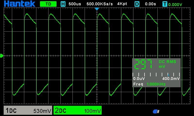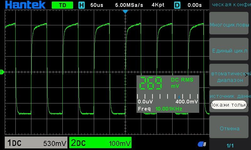 Картинки (весёлые) добыл из Хантек-а (для тех, кто знает толк): Спецом сделал на 4 кГц, как наиболее информативно... Не нравиться выброс на заднем фронте, он такой же и при питании от 12 Вольт и при меньшем входном сигнале ...
