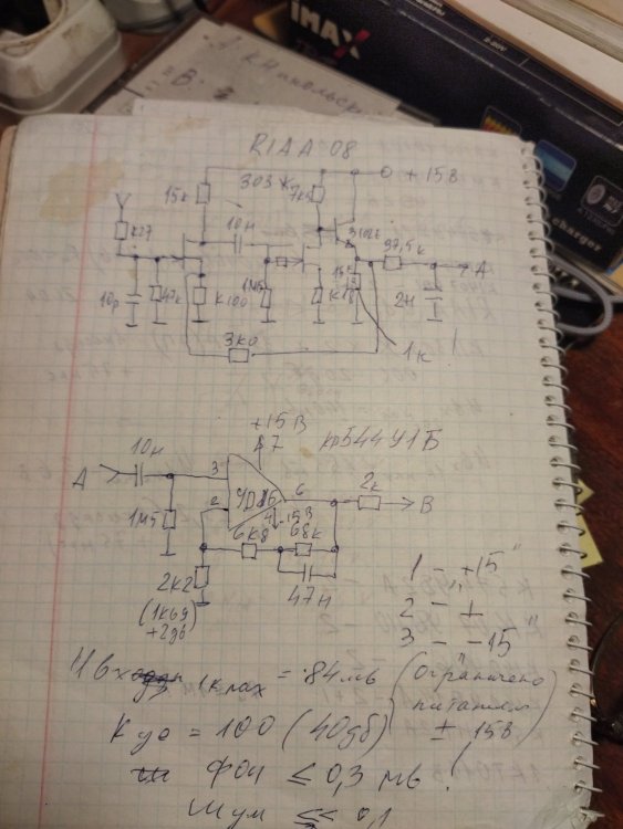 Листая старую тетрадь набрёл ещё на один удачный аппарат 2008 года, принятый в том же году для оцифровки винила одним звукорежисёром, фиксирую: Усиление 40 дБ, питание 2 по 15 Вольт...