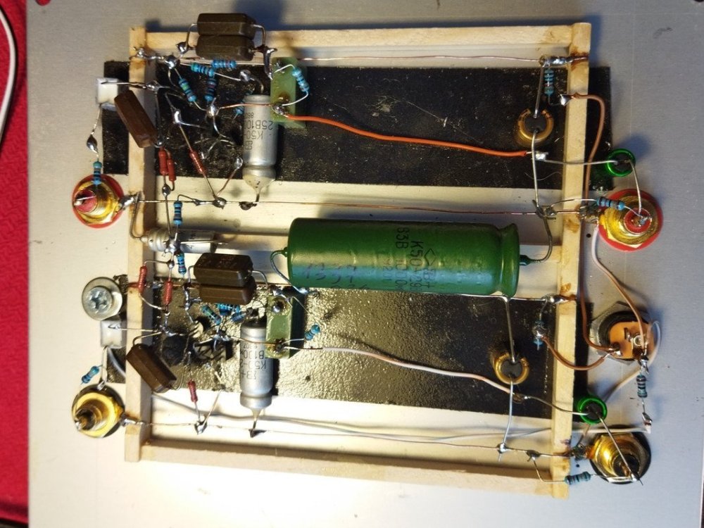 В ЛС спрашивают - какой корректор посоветуете - да вот же он, Авось, взяли его послушать, и не вернули, пытался сделать второй, один канал спаял и скучно стало, отложил, потом сделал УВ для кассетника, по этой схеме, на том и порешили... Триоды П416, ГТ308, но и на П401 отлично работает! Можно смело делать печатку, на один канал, только никакой симметрии, и не мельчить, чтобы конденсаторы приличные поставить, вот фото и схема: