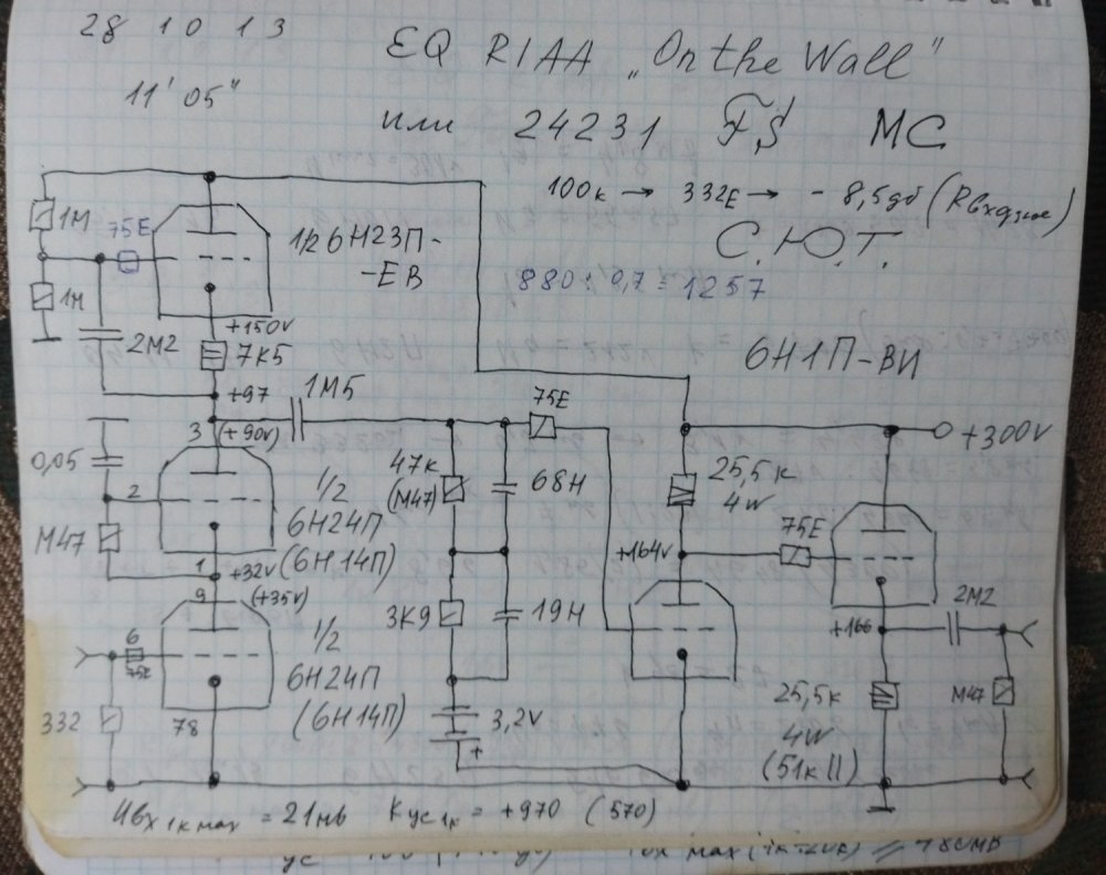 20. Заключительный аккорд: Перетряхнул ещё один старый проект, который задумывался как с балансным входом, но один нувистор неожиданно немного умер, заменить в то время было нечем, сделал обычный вход. Так было: Так стало: Теперь это неинвертирующий, малошумящий и очень линейный корректор МС...