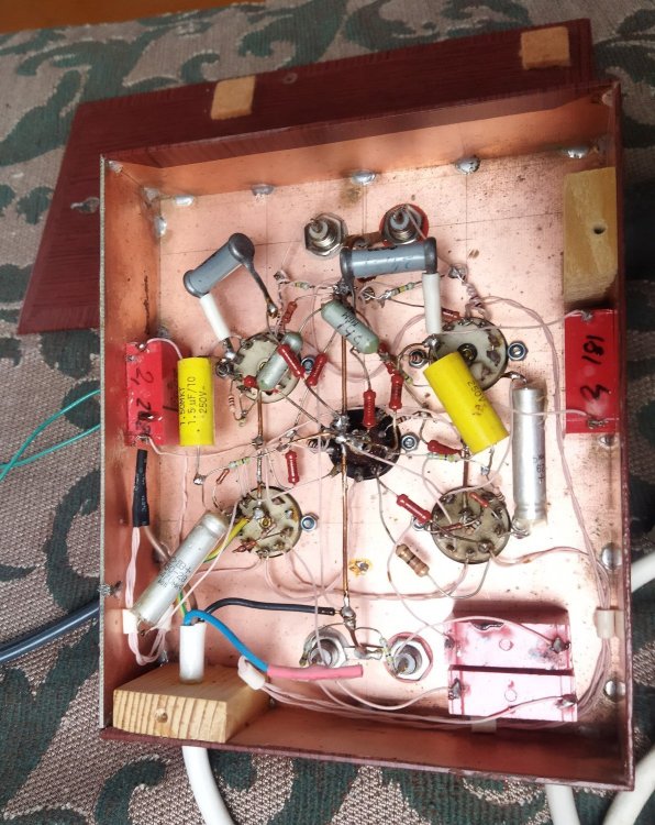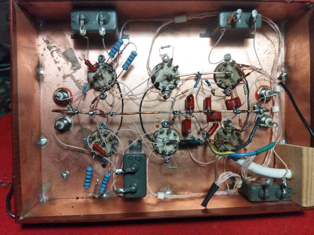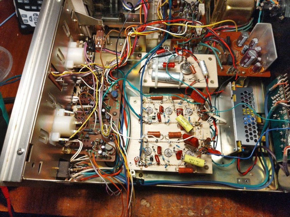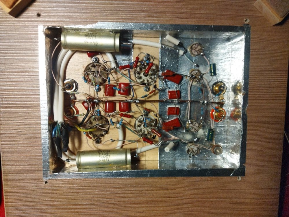 5. Страсти по МАГам радуют - "куры передохли - высыдайте новый телескоп"))... И - по делу - в декабре 2014 сделал первый ламповый предварительный УВ и запихал в Akai CS-F14, не круша аппарат, а только выпаяв 4 электролита и вставив в разрыв свою схему. Японские кассетники, двухголовые, все выполнены по одной блок схеме - предварительный УВ, далее Долби процессор (будь он не ладен!), никаких универсальных усилителей! Что и удобно... Усиления сей схемы как раз хватило для прямой замены, затем было много иттераций и, спустя 10 лет пришло время снова этой-же схемотехнике: Даже плата сохранилась, хочу её теперь в Uher запихать))...