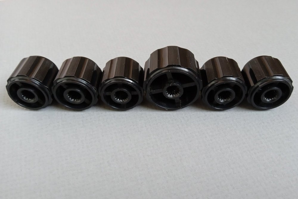 Пробил свои заначки именно по alps которые стопудово подойдут на валы родных резисторов, про китайские подделки не знаю, ручки плотно входят по втулке, вид ближе к новым, какие либо царапины, сколы отсутствуют. Внешне на 5!