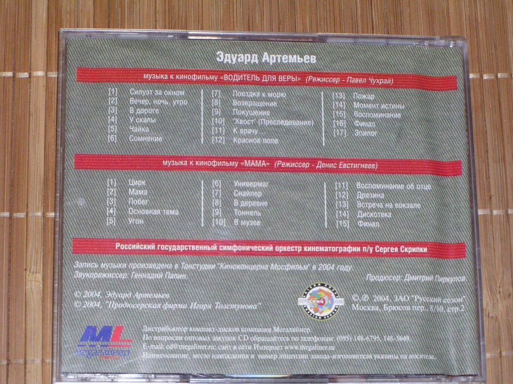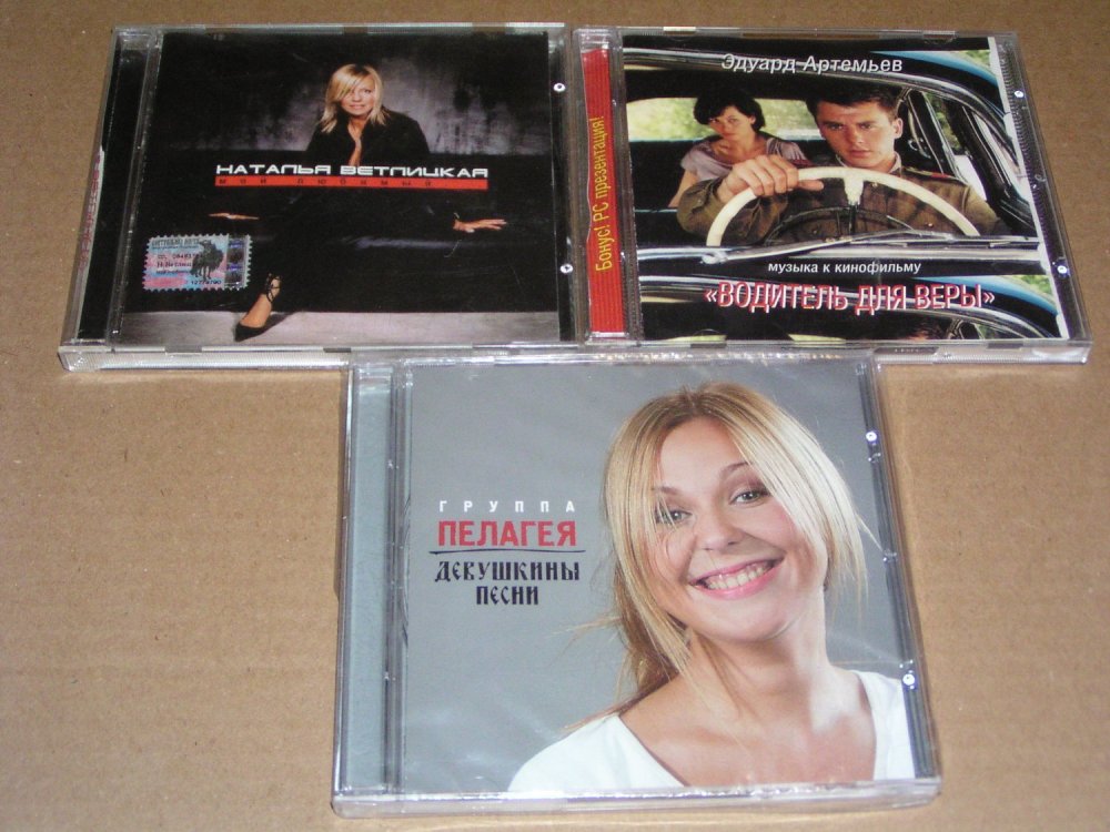 Лот 2. Отечественное. Цена лота 500 руб. 1. Н. Ветлицкая. Мой любимый. 2. Э. Артемьев. Музыка к к/ф "Водитель для Веры" и к/ф "Мама" 3. Группа Пелагея. Девушкины сны.