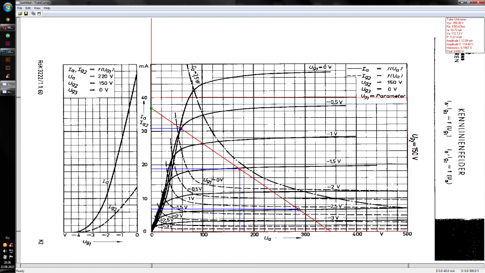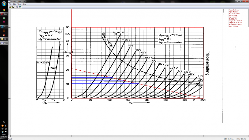 Расчёт рабочей точки по ВАХ. Усилитель SE на 6н7с + EL34