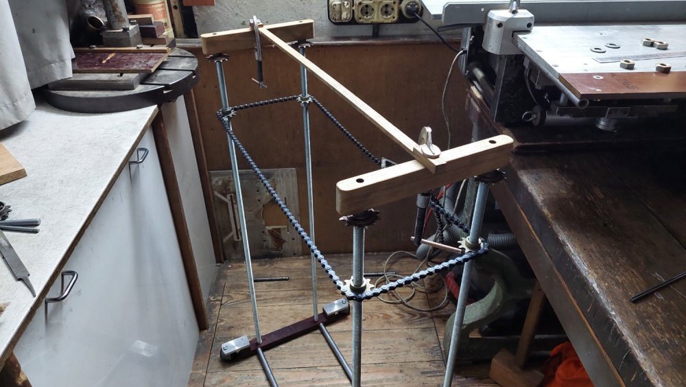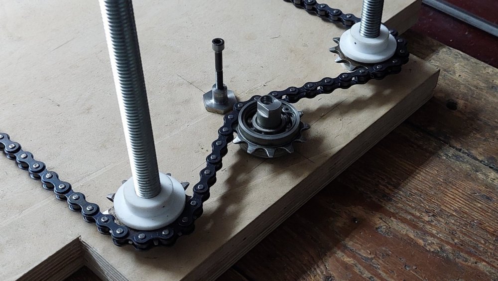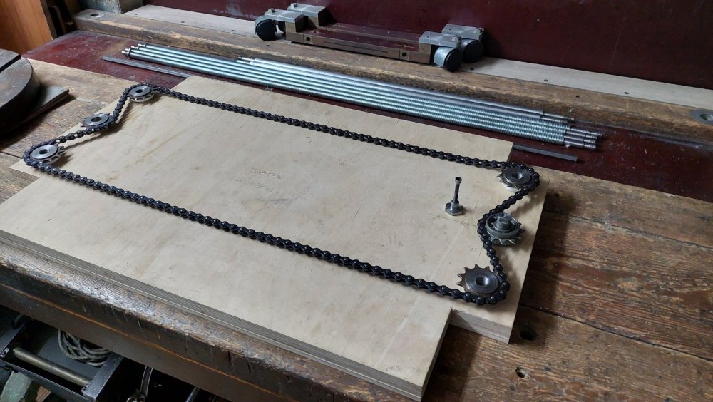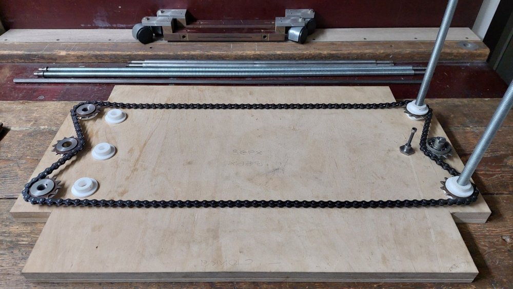 Делается из того, что имеем... Куплены только резьбовые шпильки, приводная роликовая цепь, калиброванный шестигранник Ст45. Все остальное фактически дармовое; звездочки, разные железяки, стеклотекстолит - Советский чермет, фанера - мусорка Центрального Дома Художника.