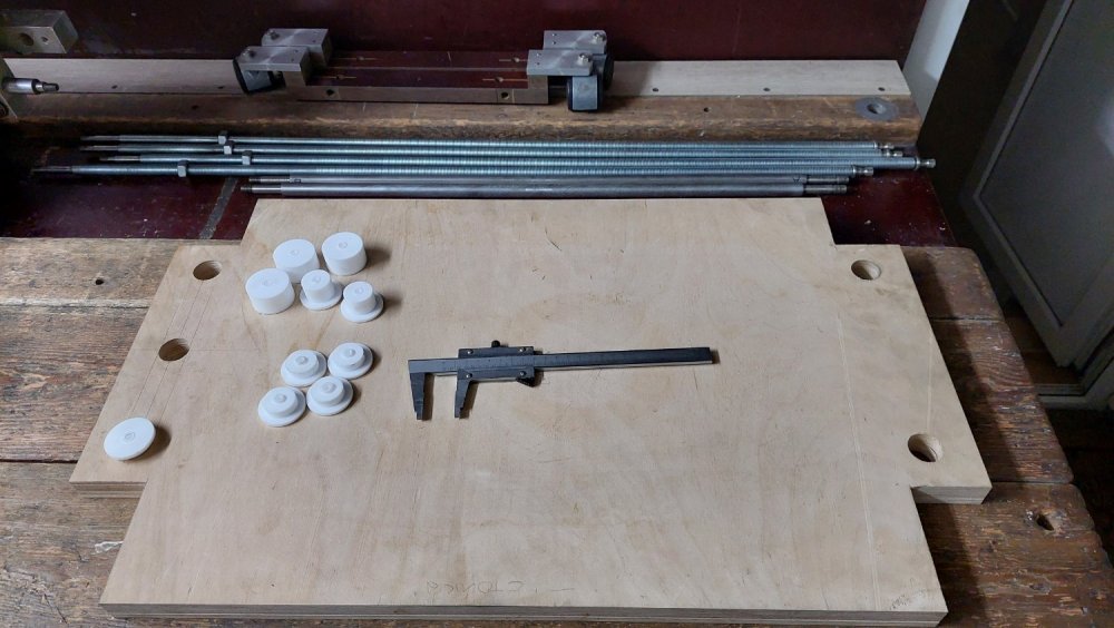 Добрый день, это провод с чермета Советской эпохи, катушки возбуждения статора размотал, точно марку не скажу, изоляция стекловолокно - вероятно ПСД. Четыре катушки, куда его нагревостойкость применить? Прикидывал пустить его на первичку выходных трансформаторов ГМ70 (двух катушечных), но его немного не хватало, пробивное напряжение небольшое, как он в звуке тоже непонятно. Решил пустить на дроссели, не выбрасывать ведь. Продолжу о намоточном устройстве... к сожалению станок "Универсал 3" имеет не большие размеры и большие катушки на нем не намотать, как по диаметру 70мм, так и по длине. Но зато он занимает мало места в квартире, весит всего 60кг., имеет грамотную и жесткую конструкцию. Есть конечно упрощения/недостатки, но в 80-е годы это был лучший доступный вариант. Поднятие/перенос вала решает почти все проблемы; диаметр катушки не ограничен (в разумных пределах), длина намотки определена ходом суппорта 215мм (вал потребуется длинной 450мм). Само устройство не нарушает функциональность станка, легко и быстро монтируется, не занимает много места. Рассматривалось несколько конструктивных решений варитора; ступенчатая регулировка и варианты плавной, выбрал решение с двумя пружинами. Всегда многое зависит от наличия исходных материалов, их размеров, технологических возможностей. Тут важно гармонично связать все вместе. Например имеется закаленный шлифованный вал диаметром 12мм, длиной 350мм, его не просверлить, не нарезать резьбу. Пришлось посадку шкивов выполнить таким образом, примитивно конечно болтом придавливать, центровку нарушаем. От вероятного прокручивания сделаю на валу абразивом лыски глубиной 2мм, проточка канавки под ремень в собранном виде. На этом пока все, работаем дальше...