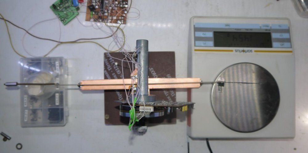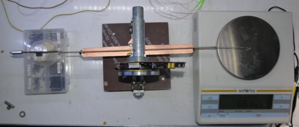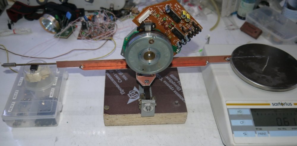 Тема была еще на старом АП-е. Буду по мере продвижения выкладывать фото и описание. Сегодня окончательно балансировал маховики. Балансировка потребовалась после того, как я увеличил их массу и перебрал (заменил подшипники) одиного из моторов (капстан от бетакама). Оказалось, что балансировка маховиков не так сложна, а сам способ я придумал еще несколько лет назад. Отношение массы маховика (300 гр) к добавочному весу ( ок. 150 мг) оказалось 0,0005 % ! Вначале статическая балансировка, определяется макс. отклонение веса. Смещенный центр масс будет расположен на прямой, проходящей через центр маховика, параллельно оси подвижного коромысла - рычага. Затем динамическая балансировка (мотор вращается) выходное напряжение с усилителя тензодатчика удобно оценивать по отклонению милливольтметра (В3-38). Разрешение этого способа зависит от используемых весов и может быть весьма большим.