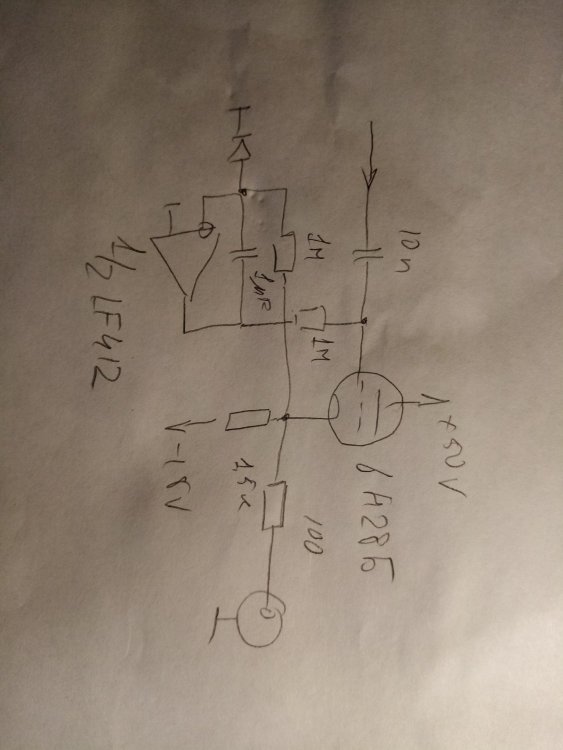 6Я тут схему выкладывал, кажется. На мелкой лампе повторитель, типа 6н28б, с двухполяркой катод от минус 15 питается, анод плюс 50. В сетку ей серво на ОУ работает. На выходе получаем ноль, а минус 1,5 в в сетке, что серво отработала отделяем от остальной схемы хорошим конденсатором небольшой емкости. Можно даже в 0,01 мкф. Выбор тут гораздо шире.