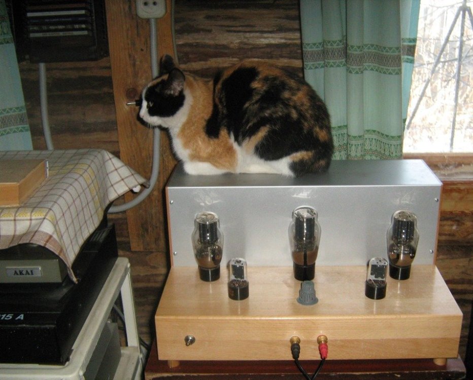 10. Все тот же унч у друга больше пятнадцати лет, драйвер на 6sl7 от +650в СРПП в два этажа, и LS50 с +450в с автосмещением, ТВЗ Алексея Шалина, нагрузка 15 ом