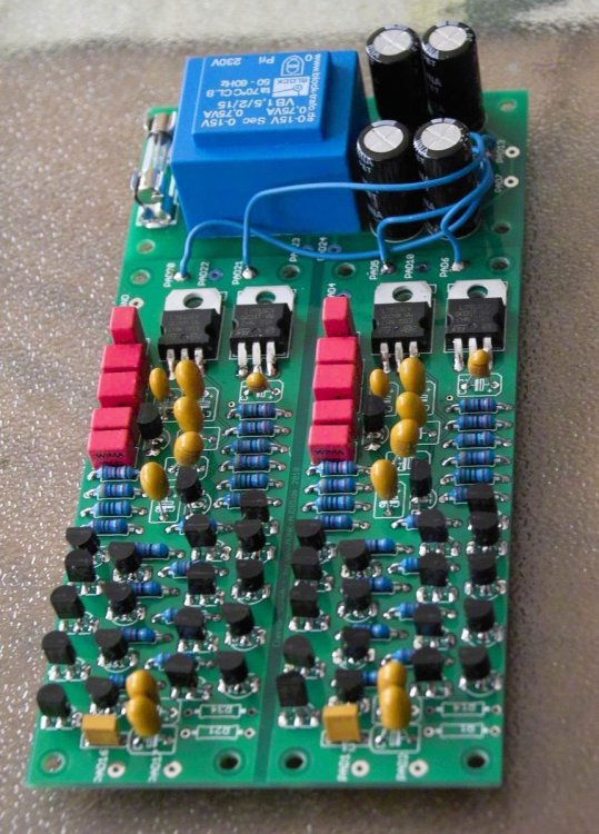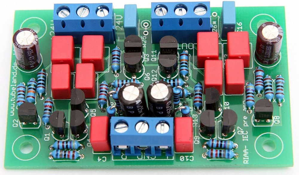 Еще с параллельными транзисторами - SUPRA . Публиковался в 82-м году в Электор ( это был КИТ ) . Корректор можно было переключать в режим МС( заменой резисторов R1 и R14 на плате ) - в статье есть упоминание об этом . Несколько лет назад стали продавать упрощенный вариант ( с меньшим кол-м транзисторов ) - рассчитанный только на ММ , и у него другая топология платы . Фотографии плат - новодельный вариант ( итальянцы снова наладили выпуск этого КИТа ) . Оригинальная статья из Электор - в документе под фото . Supra Elektor 1982.pdf