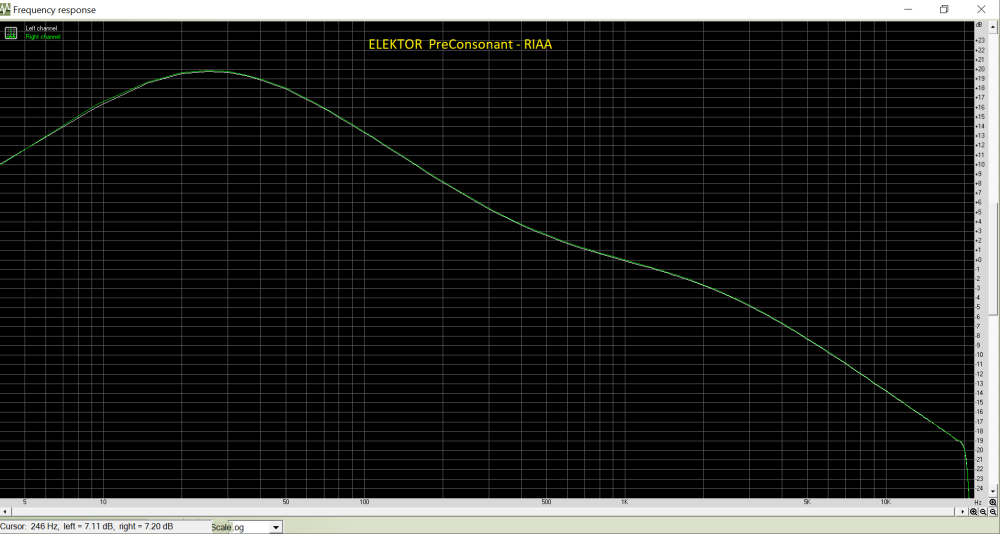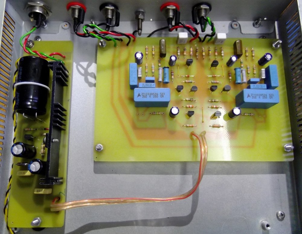 3. У него нормальное стерео-разделение , ничем не хуже остальных моих корректоров ( даже более сложных ) . Взаимное проникновение между каналами на частоте 1 кгц - получилось около минус 82 дб ( по замеру через RMAA и аудио-карту Asus Xonar ), на частотах от 5 до 20 кгц этот параметр был минус 86 - 90 дб . Никаких аудиофильских деталей я не применял , транзисторы были оригинальные ( не новодел ) , производства Моторола ( BC-549/559 ) . Потенциометры на выходе я не ставил , кондёры в цепях коррекции - пленочные Эпкос , разделителный кондер на выходе - тоже Эпкос .Стабилизатор питания на двух транзисторах ( один из них дарлингтон ) - общий для обоих каналов . Звук детальный , с хорошим глубоким басом и хорошей динамикой .