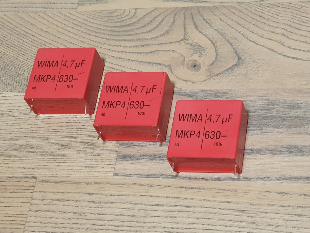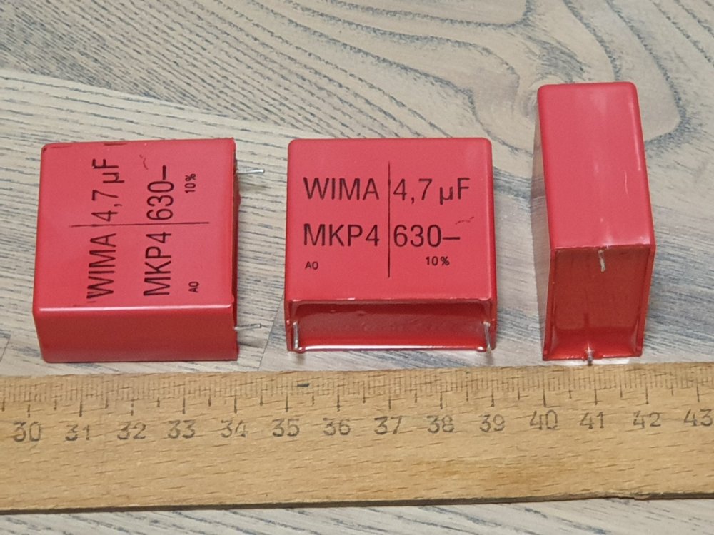 Продаю очень качественные полипропиленовые конденсаторы 4,7 мкФ WIMA MKP 4 с высоким напряжением 630 В и шагом 37,5 мм.