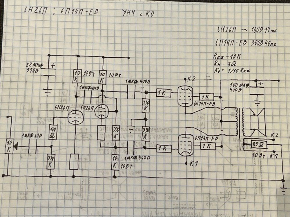 6Н26П была разобрана на канале «Неизвестная физика», но там точка покоя была выбрана максимально справа, позднее, пришли к выводу, что 140В 16ма лучший режим, катодные у 6Н26П будем пересматривать, тк эксперименты с данной схемой не закончены, до итогового варианта еще плясать и плясать