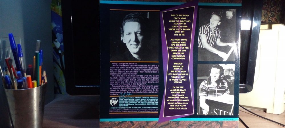 Мастер барабанного боя ногами по клавишам рояля-неповторимый Джерри Ли Льюис!!! Этот альбом, состоящий из двух виниловых дисков, не зря назван -Вехи ( Milestones), ибо на нём представлены наиболее значимые работы великого мастера и короля , в конечном счёте, рок-н-ролла. Большое количество фоток, чёрно-белых, цветных, за разные годы творчества Джерри Ли. -