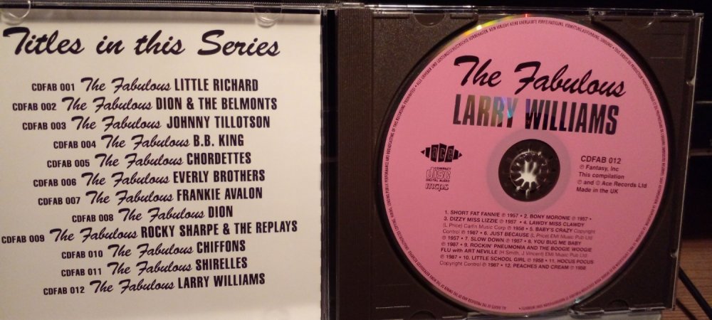 Забойный рок-н-ролл 50 х годов в исполнении Ларри Вильямса. По степени безумства и оголтелости, я полагаю, он мог бы составить конкуренцию Литтлу Ричарду. Композиции Вильямса очень любили Битлс и исполняли их на своих ранних дисках. Я специально сфоткал крупным планом состав песен, для интересующихся. Первая не вошла, она называется Shot Fat Fannie. -