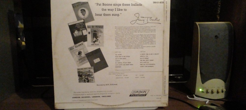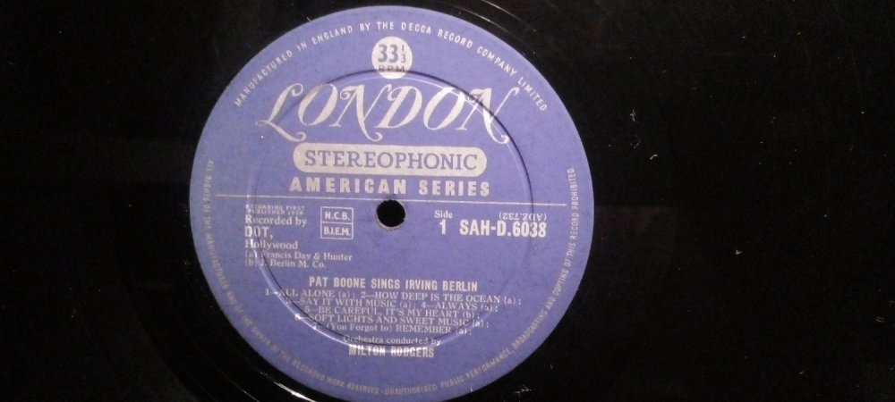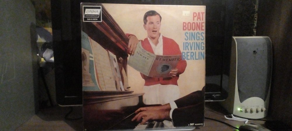 Эта пластинка- сейчас уже музейная редкость , 1957 год, а состояние почти как с магазина, не перепечатка, английский стереовариант, первопресс! Ирвинг Берлин, как оказалось родившийся то ли в Тобольске, то ли в Тюмени, российский еврей, уехавший в Америку, по-моему ещё до революции, писавший там музыку для мюзиклов и оперетт, был очень знаменит, благодаря созданию им шедевра-"Боже, храни Америку!" А на этой пластинке, он совместно с Пэтом Буном, исполняет композиции своего собственного сочинения в качестве аккомпаниатора Буну, а помогает в этом оркестр п/у Милтона Роджерса. -