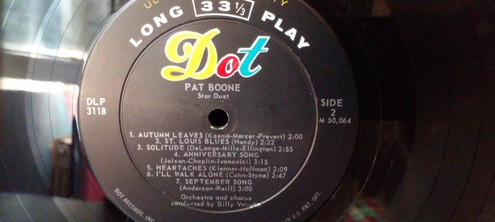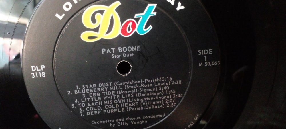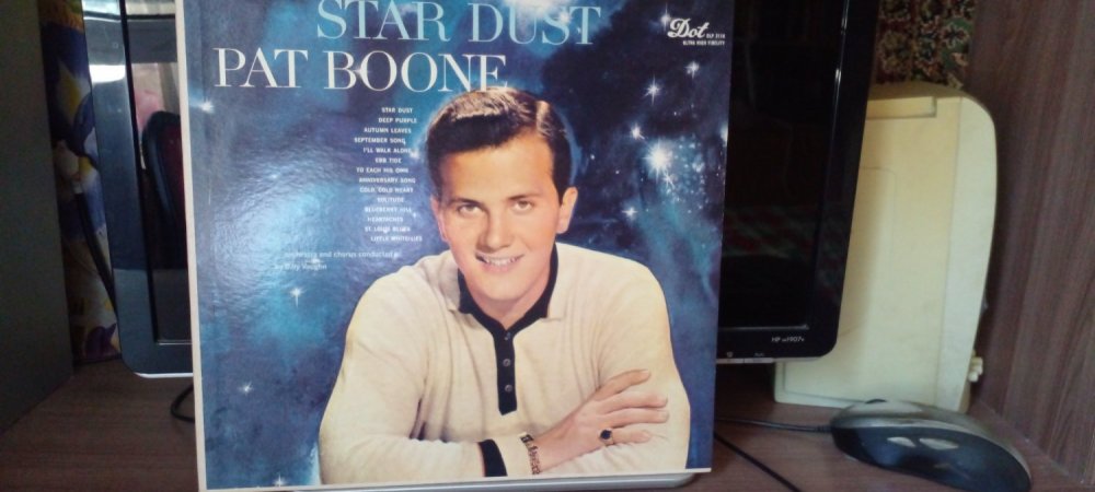 Мечта всех меломанов-коллекционеров, прошлых лет. "Звёздная пыль", пластинка, выпущенная американской фирмой ДОТ году , по-моему в 1959 (за точность не ручаюсь). Она ценилась так же, как ранние диски Пресли и Битлс, ведь Бун выложился голосом здесь по полной программе. Смотрите состав песен-это мировые шедевры, вряд-ли кто сейчас из вокалистов ,сумеет так проникновенно спеть, как Пэт Бун. Мы с Жоркой Белым (мир его праху)-знаменитым коллекционером из Питера, много говорили о Буне, Жорик был его поклонником, имел практически все его записи на виниле, а также рассказывал мне о дочках Буна, тоже певицах. -