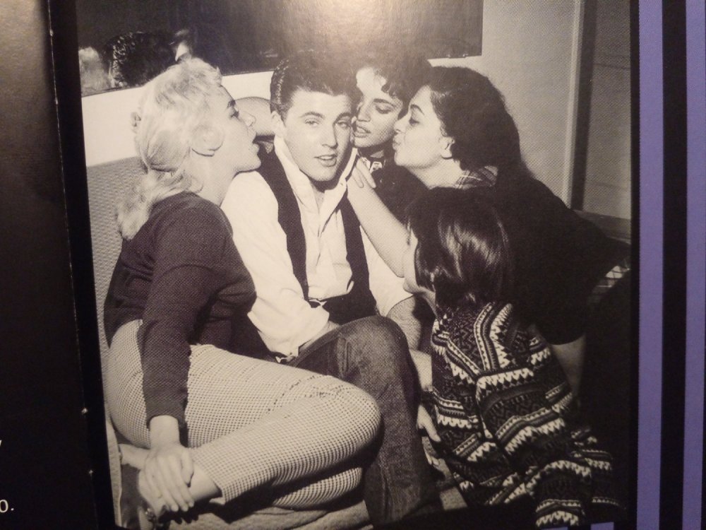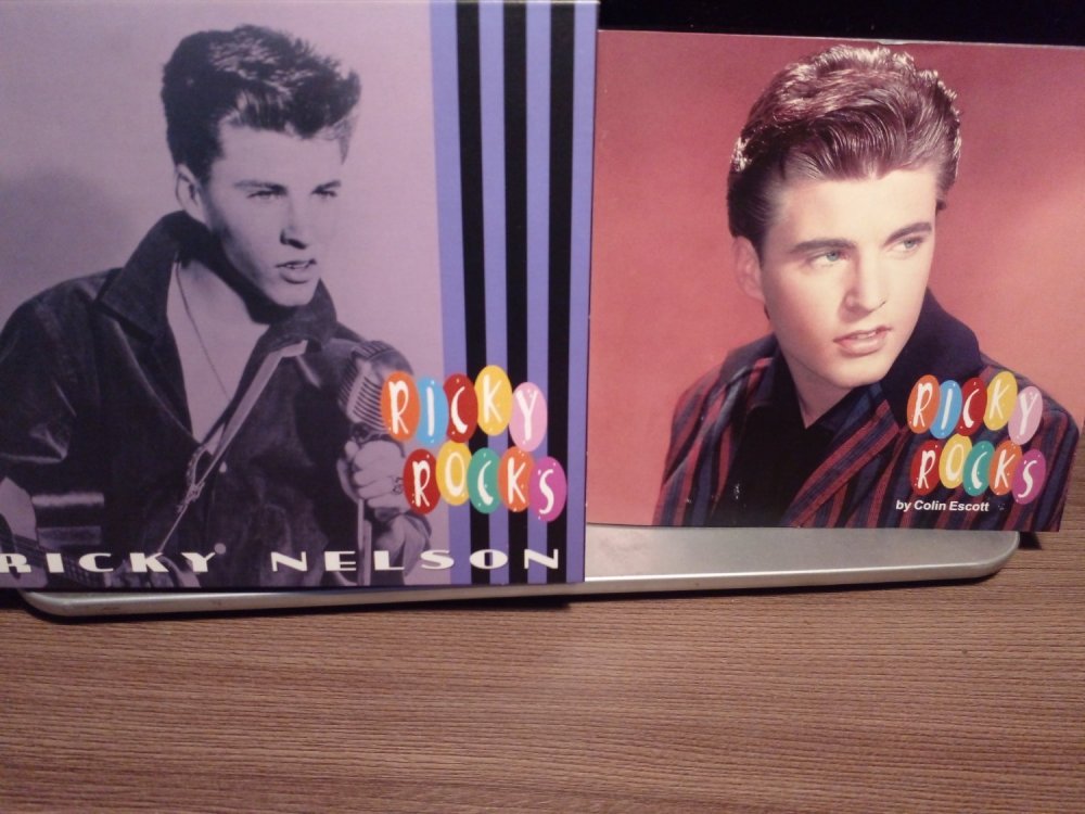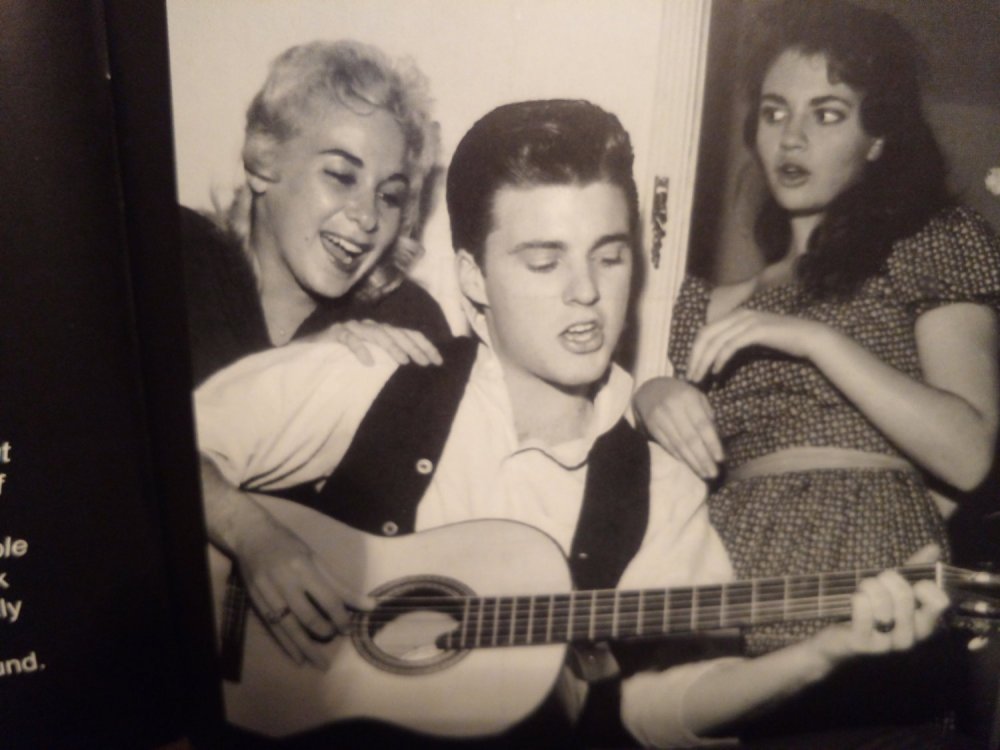 Рики Нельсон пользовался бешенной популярностью у американских тинейджеров, ну и у девчонок, тоже. Примерно как Элвис, да и года совпадают. Обидно, что погиб рано, какая-то смерть с клюкой покосила в те годы великих рокеров, во цвете лет. Разбился Рики, с невестой, самолёт упал...обидно и жалко до глубины души, всего-то 45 ему было... На предпоследнем снимке-Джеймс Бартон, повыше Рики слева, он будет соло-гитаристом у Элвиса в 70 е годы. -