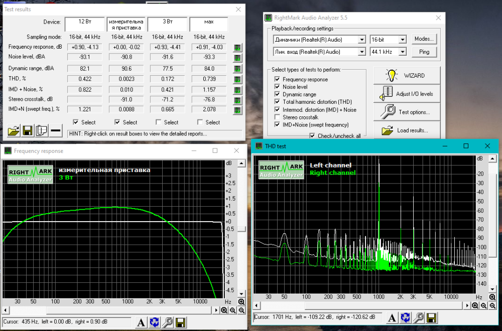 Да, собирал по этой схеме. Мне кажется, что-то где-то работает не так. Если не навалить ток покоя, слышны артефакты вроде какого-то скрипучего эха на ВЧ, при ТП под 200мА играет нормально, но и греется. Причём греются и драйверы тоже. Забавный момент - если отключить нагрузку ТП и нагрев увеличиваются на отрицательной половине. При подключенной нагрузке ТП тоже неравномерен по выходникам - на нижнем 190мА, на верхнем 120мА. Постоянка на выходе 150мВ. Осциллограф есть, но очень примитивный. Сегодня сделал несколько тестов. Результаты вряд ли можно считать окончательными, т. к. еще предстоит процесс наладки, есть пара вопросов - а если ему схему балансировки прилепить, как у Шушурина, чтобы перекос убрать? А то R120 у меня уже 1кОм стоит, на сколько его можно безопасно увеличивать? Из больших плюсов усилителя - низкий уровень шумов - я не слышу, работает ли он, даже если ухо в динамик. АЧХ скорее ламповая. Хвост гармоник длинный, но уровень их ниже -70дБ. Также сделал тест приставки к звуковому кодеку, чтобы убедиться, что он не влияет на показания. -