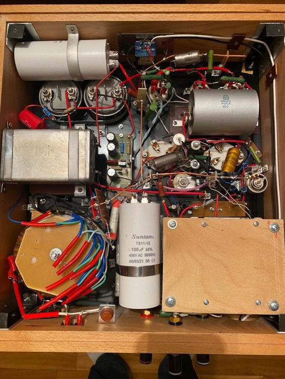 807-я оказалась дамой своенравной. Перевел второй моноблок в пентод, появился легкий фон и заводился через 5-10 минут работы. Сделал развязку по питанию драйвера и вых каскада, увеличил антизвонные, пробовал R-С цепочку с анода первой лампы на землю. Не помогло. Пришел черед выходных, намотаны 4п-3в, 2и4 с переворотом, КО между слоев второй секции вторички, экраны между секциями. Первый скомутировал 1-4-2-3, а второй 1-2-3-4 чтобы сравнить АЧХ. Оказались одинаковые, так и оставил. Поскольку проблемы были со вторым моноблоком, то сделал комутацию как у первого 1-4-2-3 и стало все нормально.