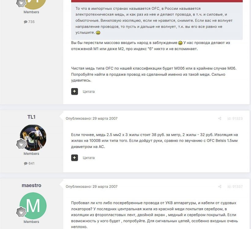 1. Я когда дорасту до сборки усилителя, наверное, буду использовать акустический кабель Nordost 2Flat (плоская OFC медь в тефлоне) 11 у.е./метр (2 проводника) http://www.nordost-cable.ru/product/catalog/2flat