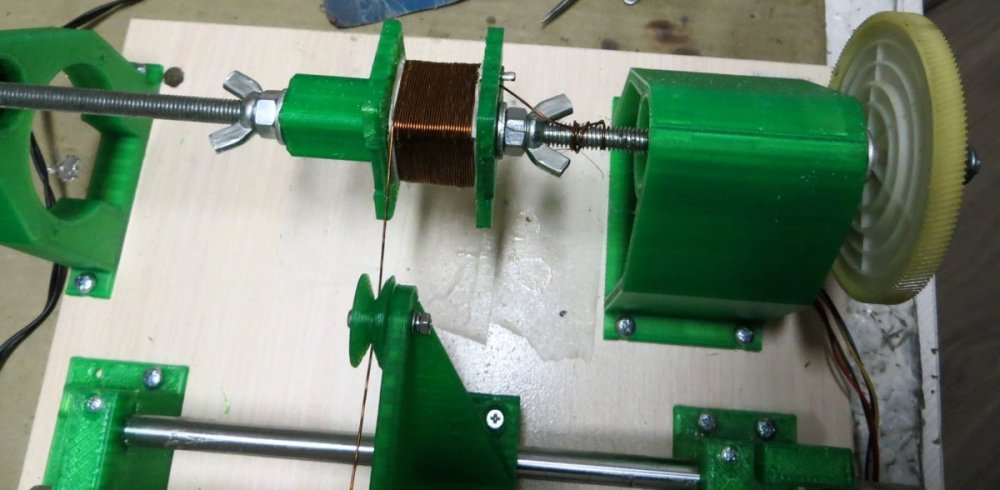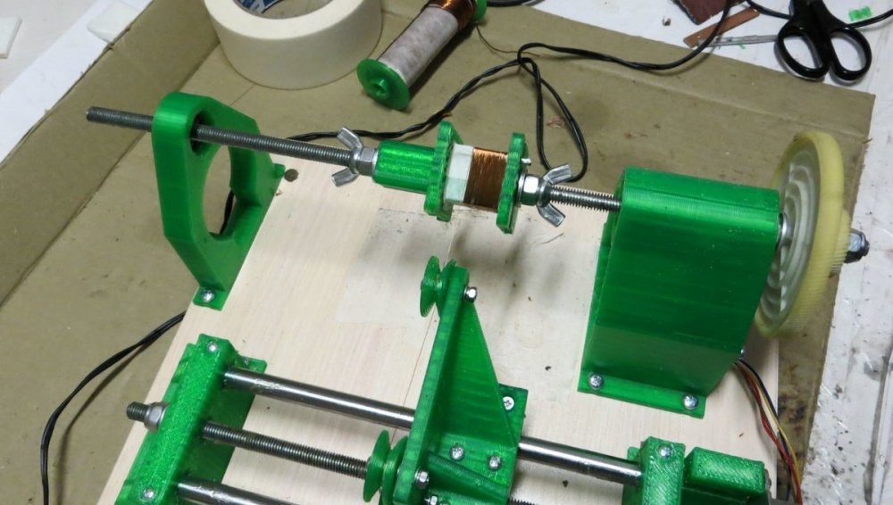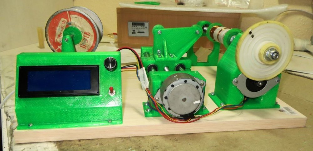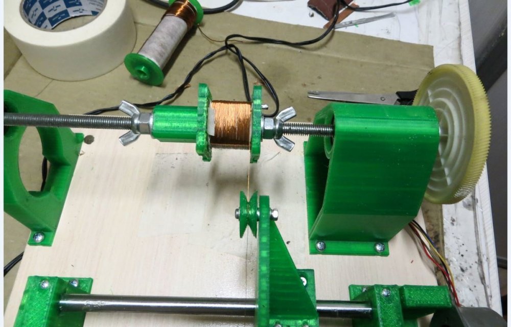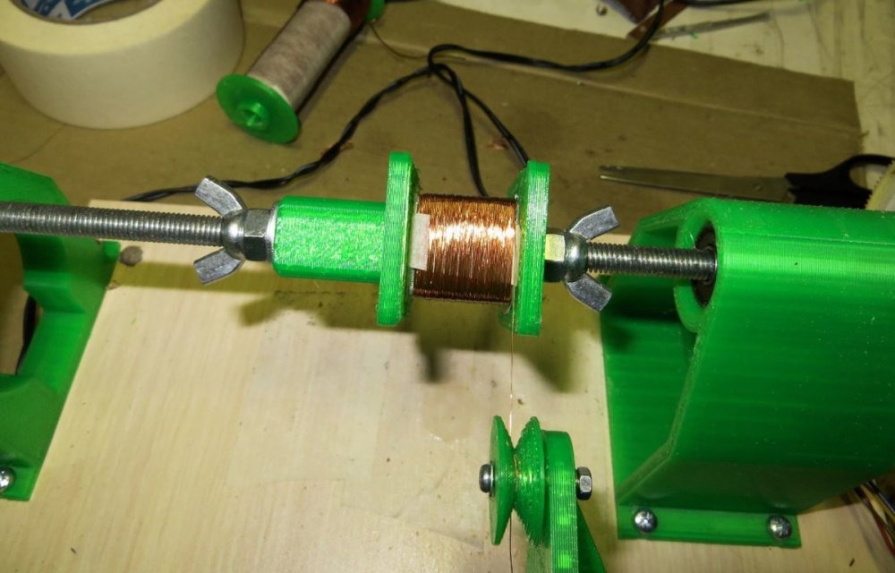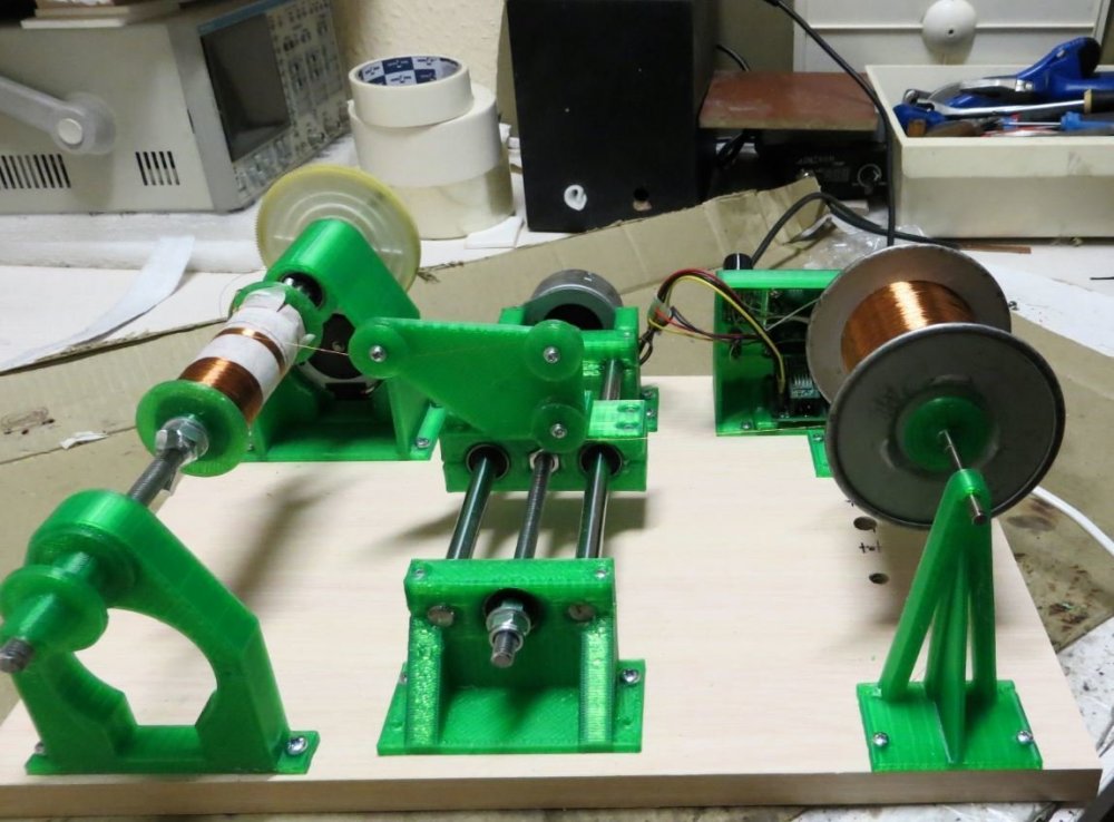 8. Мотает со сбоем 1,2 мм - тока не хватает у источника питания - сбой происходит при включении второго двигателя. Без сбоя мотает 0,8 мм - на фото - размотал старый трансформатор. Провод с остатками пропиточного лака и оловом от подпайки. Пробовал тонкий провод - 0,16 мм - тоже мотает. Все модели для печати, прошивка Namotochniy_stanok.zipUnavailable Если нужны дополнительные подробности можно посмотреть также об этом проекте также на https://3dtoday.ru/blogs/lenivo/stanok-dlya-namotki-transformatorov-detali-napechatany-plastikom-solidfilament-ot-magazina-top-3d-shop Станок сделал так как мне на тестирование бесплатно прислали катушку пластика....... ну вот решил себе такой станок заделать. За основу - схему и прошивку взял из открытого проекта TDM Lab Статья: https://forum.cxem.net/index.php?/profile/218201-tda/content/page/4/&type=forums_topic_post Видео по проекту По этому проекту материалы(модели, схема, прошивка) выложены тут https://cloud.mail.ru/public/YTqk/46a49K5DN