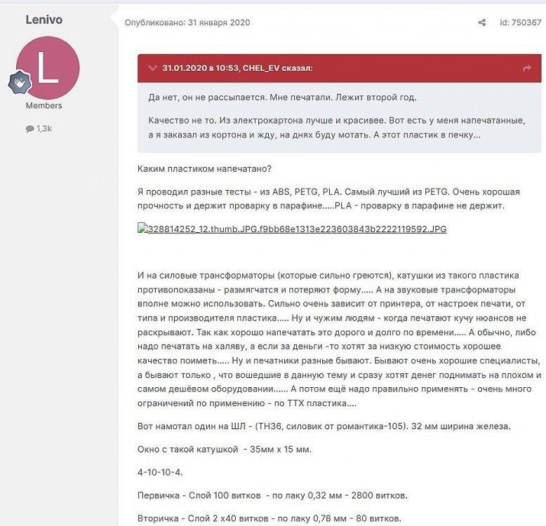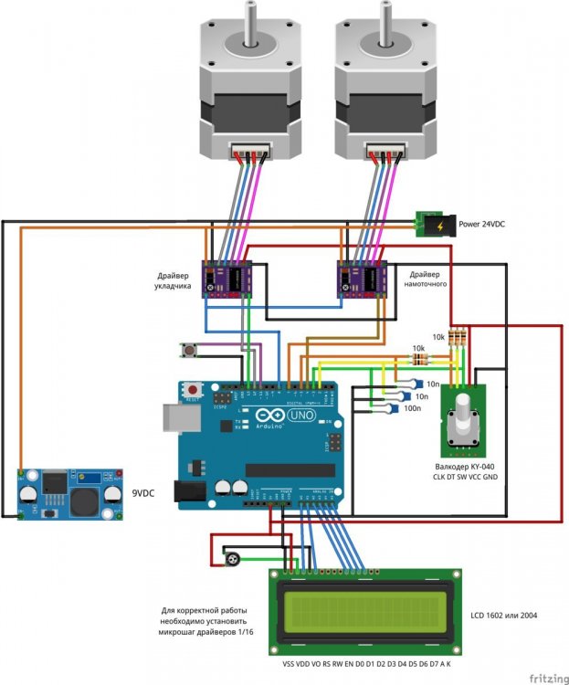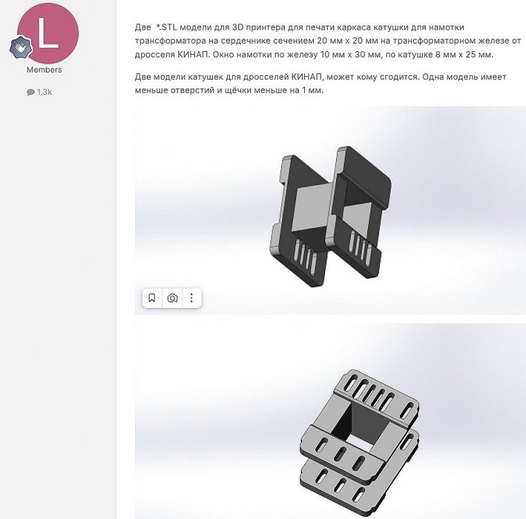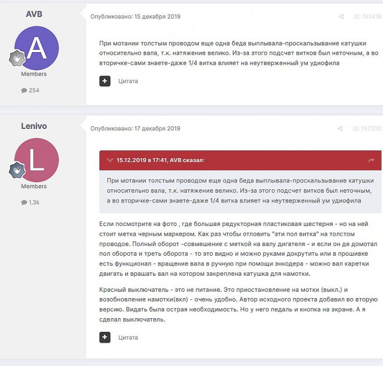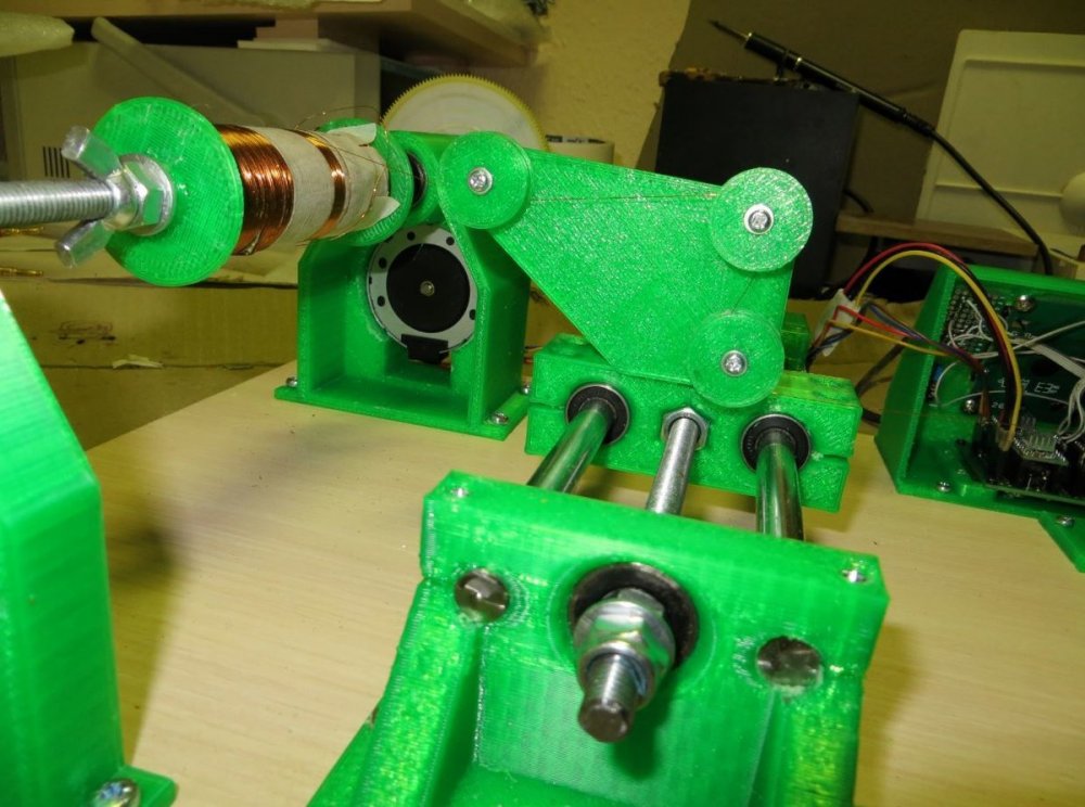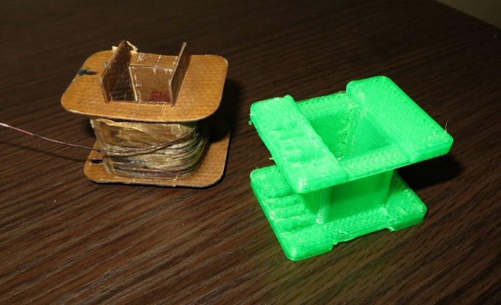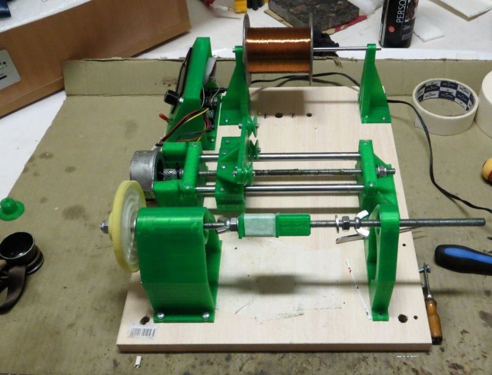 8. Мотает со сбоем 1,2 мм - тока не хватает у источника питания - сбой происходит при включении второго двигателя. Без сбоя мотает 0,8 мм - на фото - размотал старый трансформатор. Провод с остатками пропиточного лака и оловом от подпайки. Пробовал тонкий провод - 0,16 мм - тоже мотает. Все модели для печати, прошивка Namotochniy_stanok.zipUnavailable Если нужны дополнительные подробности можно посмотреть также об этом проекте также на https://3dtoday.ru/blogs/lenivo/stanok-dlya-namotki-transformatorov-detali-napechatany-plastikom-solidfilament-ot-magazina-top-3d-shop Станок сделал так как мне на тестирование бесплатно прислали катушку пластика....... ну вот решил себе такой станок заделать. За основу - схему и прошивку взял из открытого проекта TDM Lab Статья: https://forum.cxem.net/index.php?/profile/218201-tda/content/page/4/&type=forums_topic_post Видео по проекту По этому проекту материалы(модели, схема, прошивка) выложены тут https://cloud.mail.ru/public/YTqk/46a49K5DN