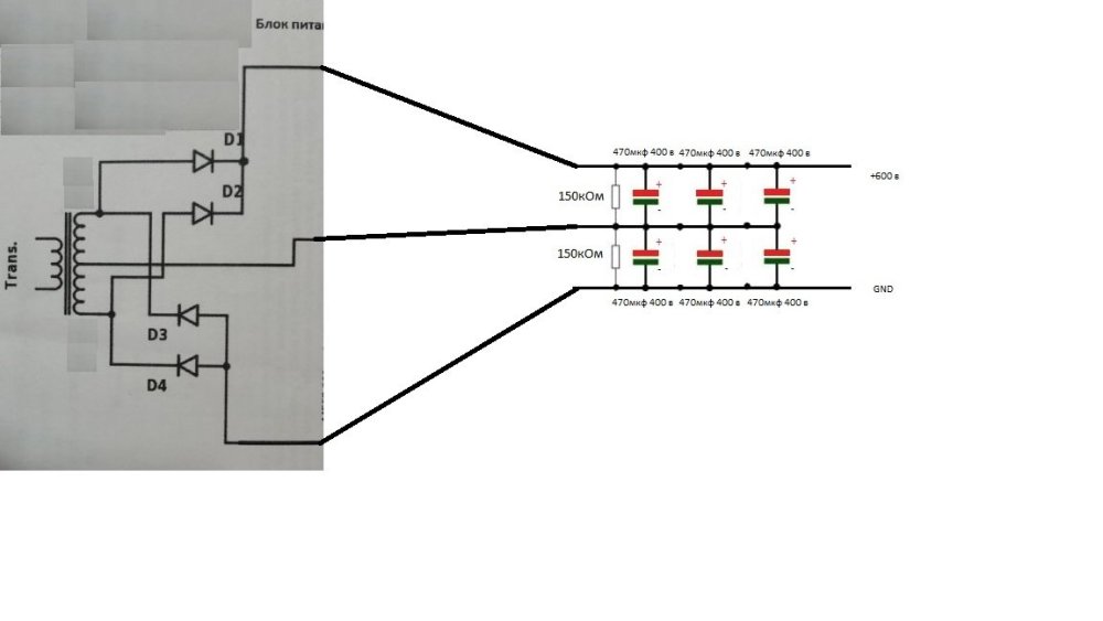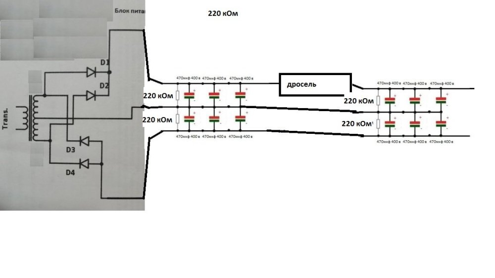 Gnd относительно средней там 215в *1.4 Да Товарищи, что я вам хочу сказать.. одна емкость 470 мкф 400 в нормального качества стоит тыщи 2 рублей. на два моноблока это 24 штуки...благо они у меня просто лежали и ждали своего часа.