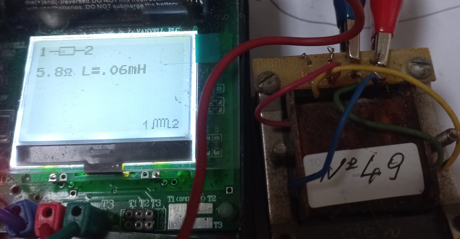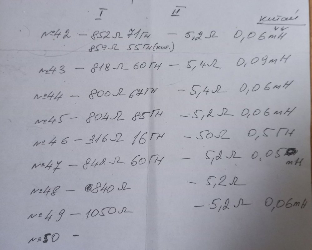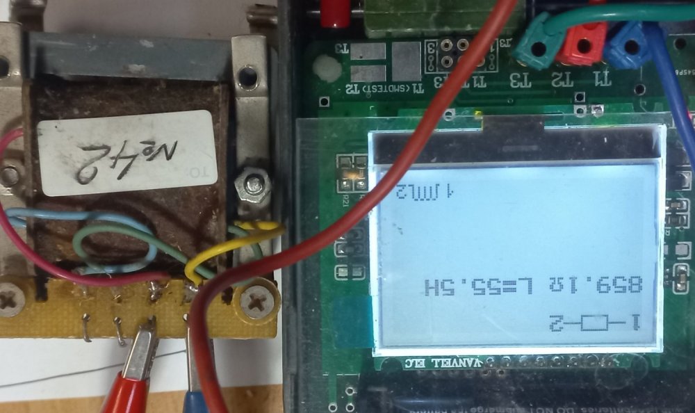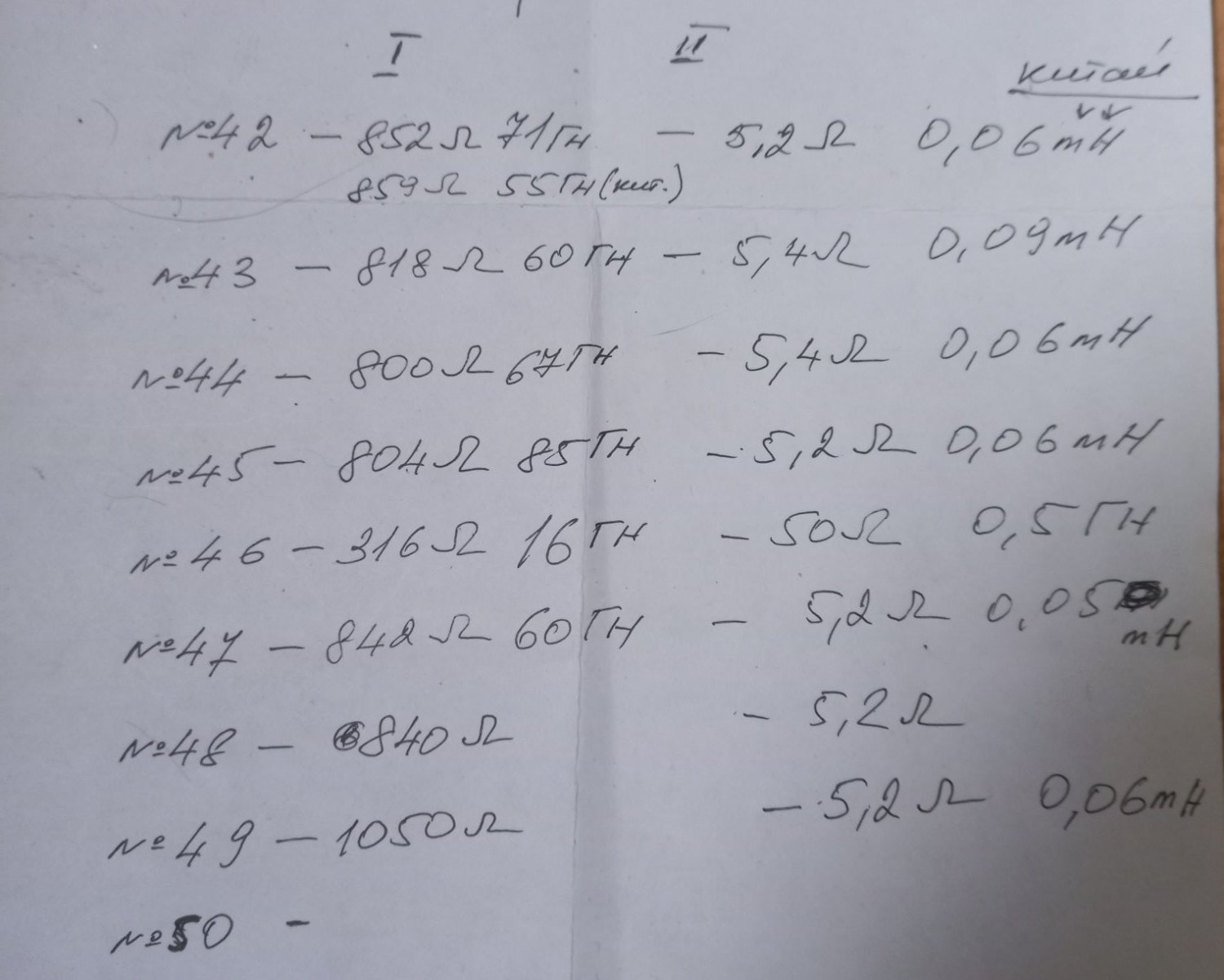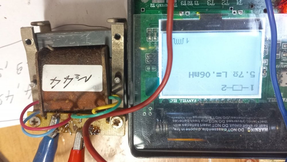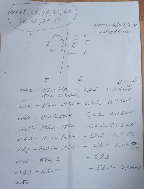 1. "На поз. №№12, 13, 14 бронь на сутки до выяснения..." - бронь снимается, не ответили... На фото выше были трансики на пермаллое 79НМ, начал замеры, ниже смотрите... Их общая схема здесь. По две обмотки. Данные свел в общую табличку. Первая обмотка у всех примерно 800 Ом, вторая 5,2 -5,6 Ома. Мой PROTEK 506 низкоомную обмотку на индуктивность не измеряет, измерил её китайским приборчиком, хоть так ... У всех показывает около 0,05мГН... 25. №42: Это обмотка 800 Ом: Это низкоомная. 26. №43 27. №44: 28 №45: 29. №47: 30. №49: При измерениях у №№46, 49, 50 оторвались выводы от контактной планки, позже подпаяю и измерю. Поз. 25-30 (№№ трансиков 42-50) - по 500р.. И ещё по ценам, откорректирую... У всех трансиков с маленькой индуктивностью, железо 30х30мм, которые подойдут для перемотки - цена 200р...