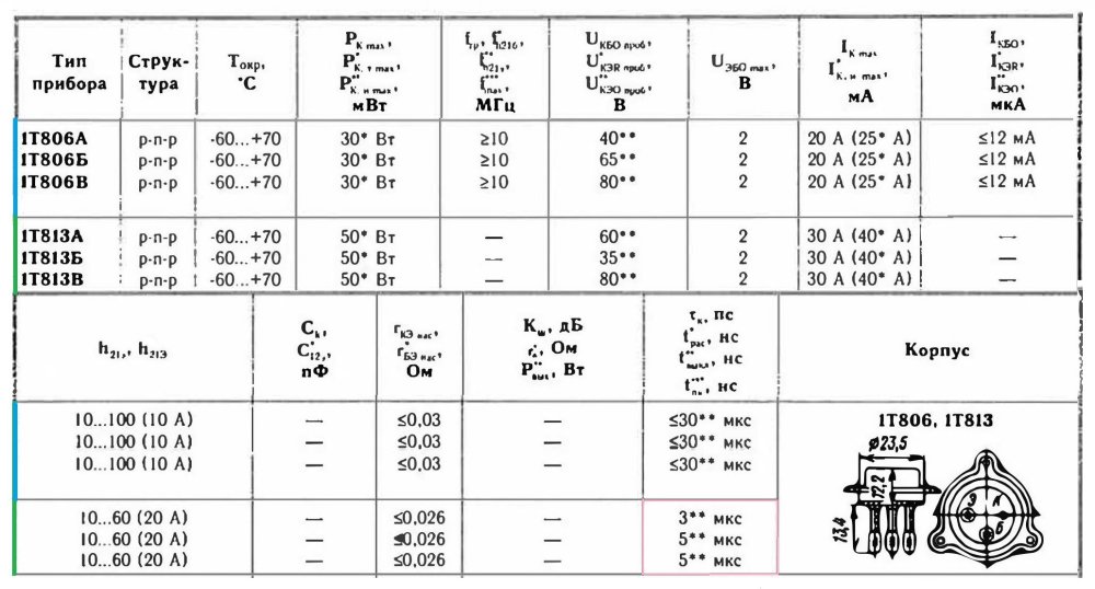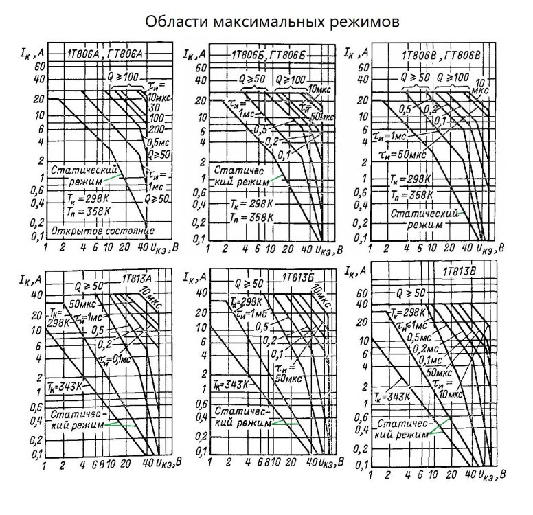 Вернемся к нашим транзисторам 1Т806 и 1т813. У первого почему то температура 343K(~70гр) и 298K(~25гр) обозначены одной линией, почему? Я не грамотный МРТ не читал, не знаю что такое Тп и Тк, предположу температура перехода и температура корпуса. В связи с путанницей в линиях, мне кажется область ранее указанная 10В, 3А одного почти равна 10В, 2А другого. Умные головы, особенно Юры из ящика, разъясните?