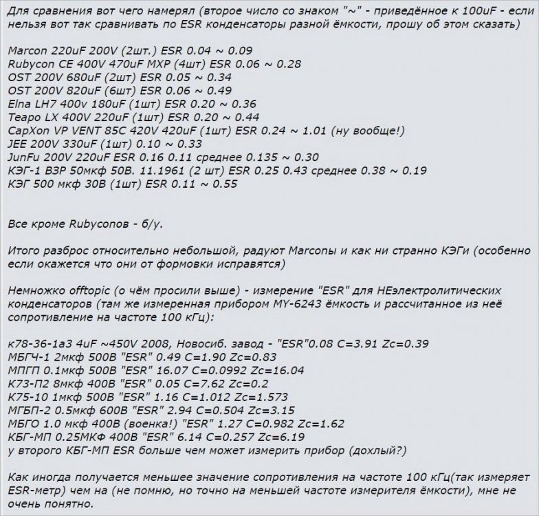 Не понятно что вы ищите, если конденсаторы с хорошим ESR, то вот они Если престижных фирм с так называемым своим почерком, то что их мерить они же предсказуемы.