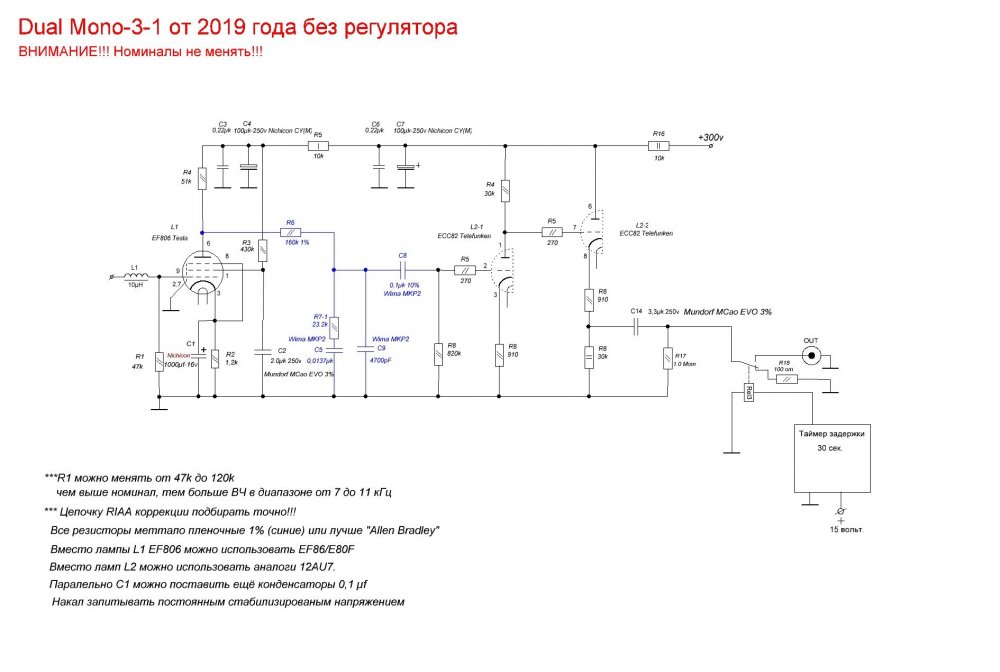 Если кого пугает большое выходное сопротивление, корректора, можно выкинуть L3. А сигнал снимать с катодной части L2. Схему прикрепил к теме. Но усиление при этом здорово упадет!!! Что для оцифровки винила не очень хорошо.