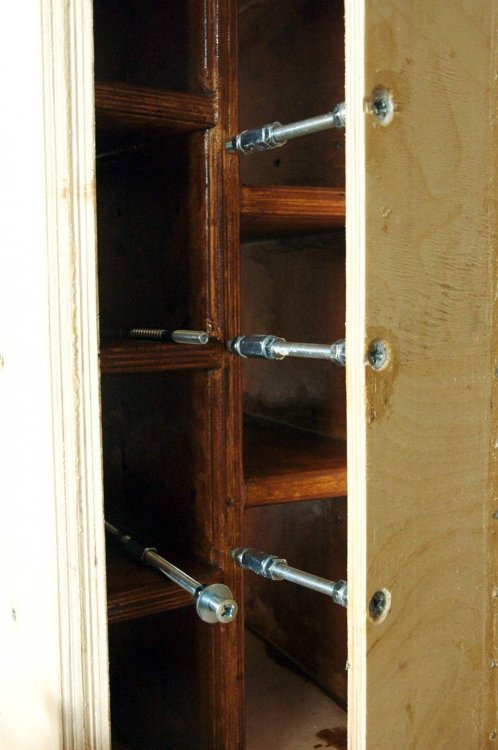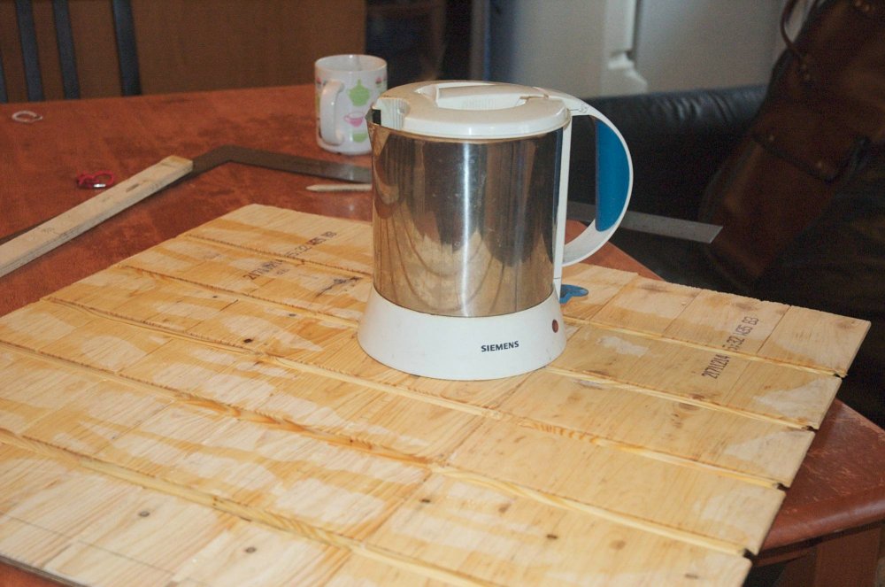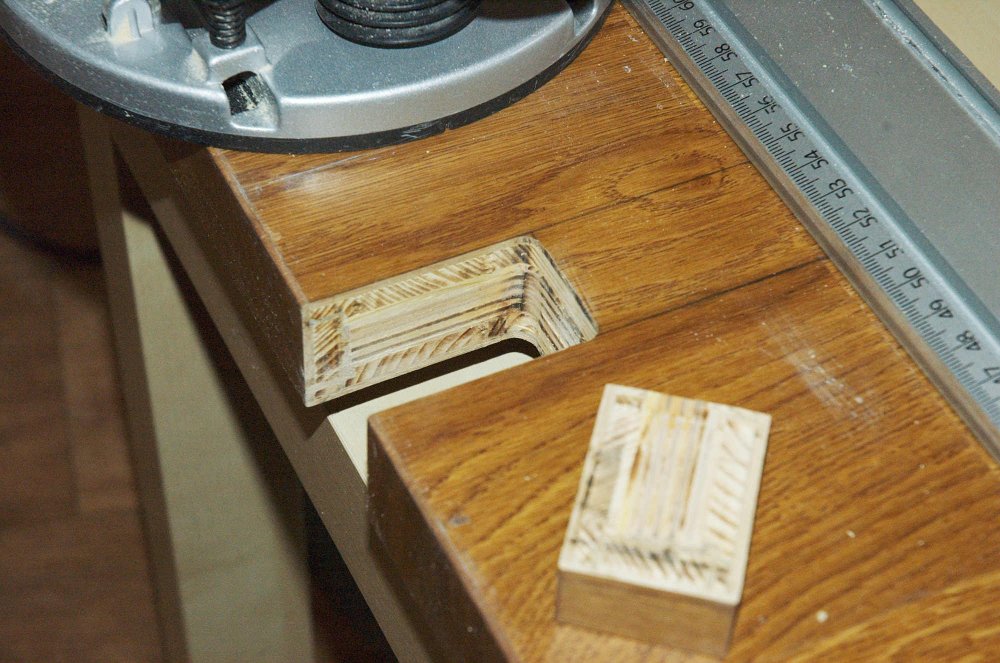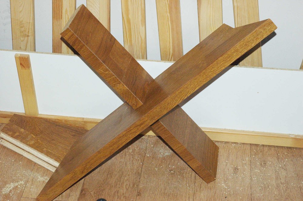 Старался. Тем более, что это было почти что первая АС, задуманная "от материала" (ящик из остатков пианино Лирика - не в счёт). Выше было как я нажовочным полотном разделывал паркет, с основой, спиленной до самого шпона. На этих деталях - косых простаках и распорке я впервые такую технологию применил. На спиле видны слои материала. Сначала у меня было много сомнений, что так получится, так что я начал с проставок, которых почти и не видно, если не ложиться на пол. Добившись результата, перешёл к крестовине-распорке.