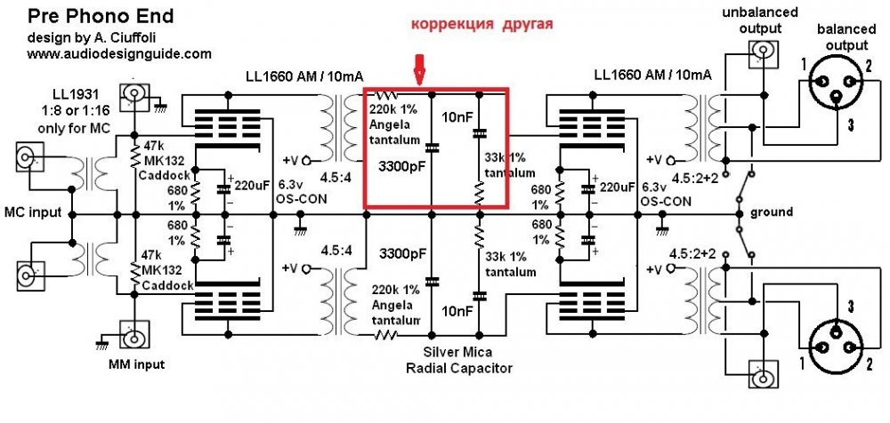А вот показался интресным фоно одного итальянца, достаточно известного, с названием корреткра"Окончательный", и такой я и сделал, но с коррекцией от фоно "Парадайз", Стародубцева, без Осконов КАддоков и балансного выхода, и на выходных пентодах АЛ4 оба каскада. Результат хороший.