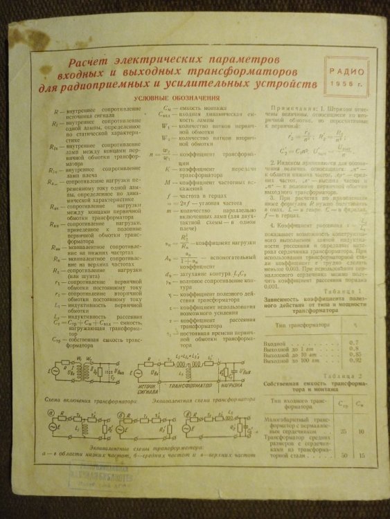 Ищу вкладку из журнала Радио 1955 г . №4. Расчет электрических параметров входных и выходных трансформаторов для радиоприемных и усилительных устройств И.Кушманов