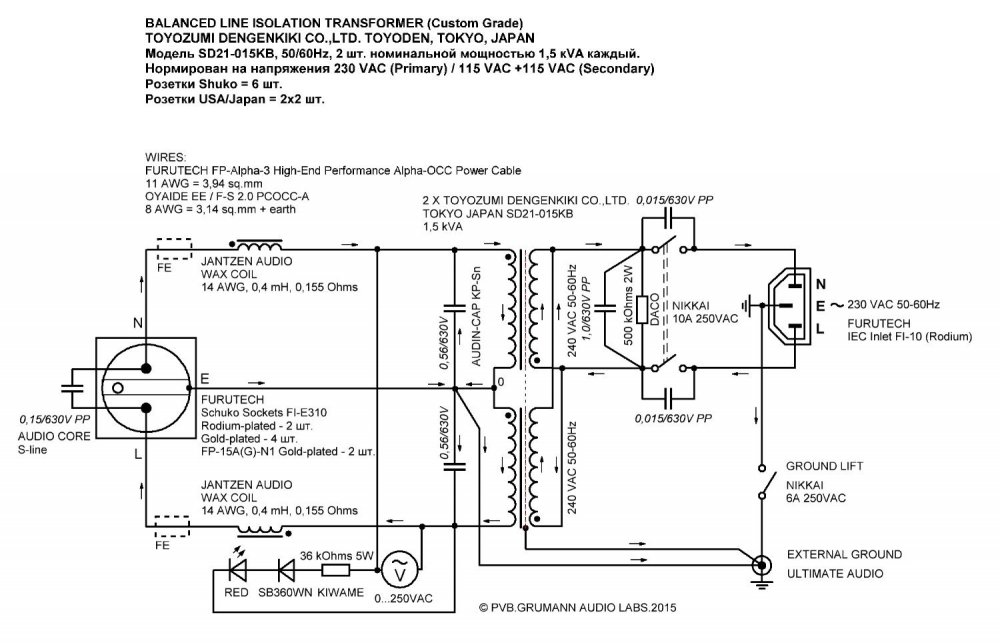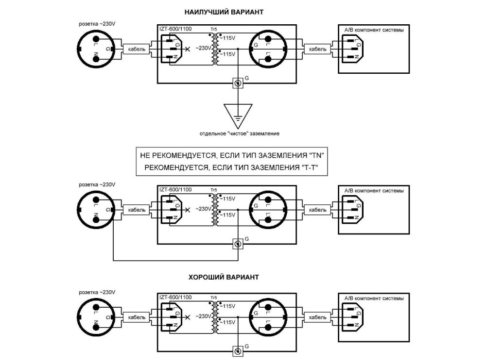 Пара схем. Если нет возможности сделать отдельные земли, то экраны к плавающей земле на вторичке. Но мне больше понравилось заземление ТТ на слух. Две отдельные, "чистые" земли на розетке и на вторичке. И фильтрация до и после транса.