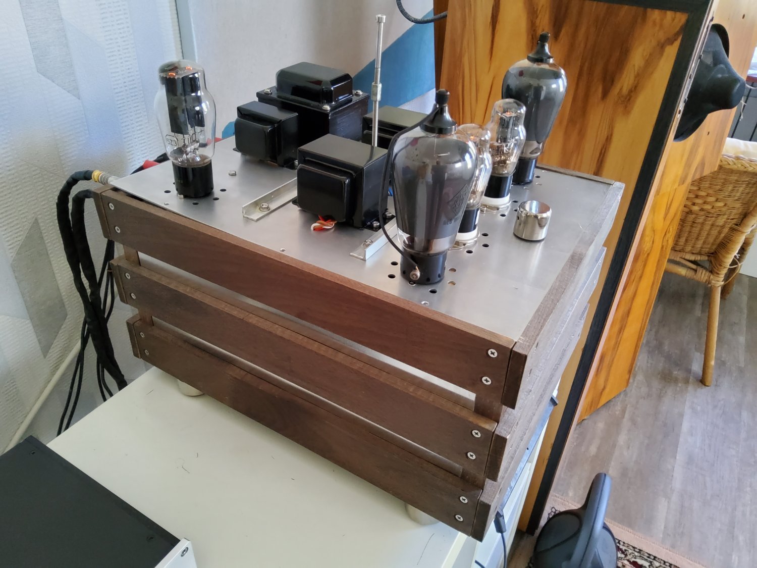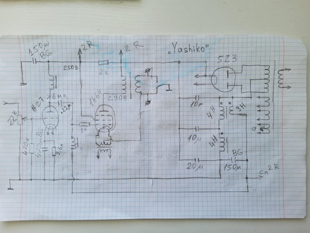 Проект практически завершен, может работать с двумя типами ламп на выходе RES1664 и RES964 через гасящий резистор 330ом на входе фильтра. За 4 месяца перебрал массу компонетов и вариантов, пожалуй, остановлюсь на этом, возможно намотаю еще твз, есть идеи. По чувствительности, с RES1664 до клиппинга чуть не хватает от моего источника, но громкости более, чем достаточно. Дроссели питания калиброваны по сопротивлению, чтобы обеспечить необходимое смещение.