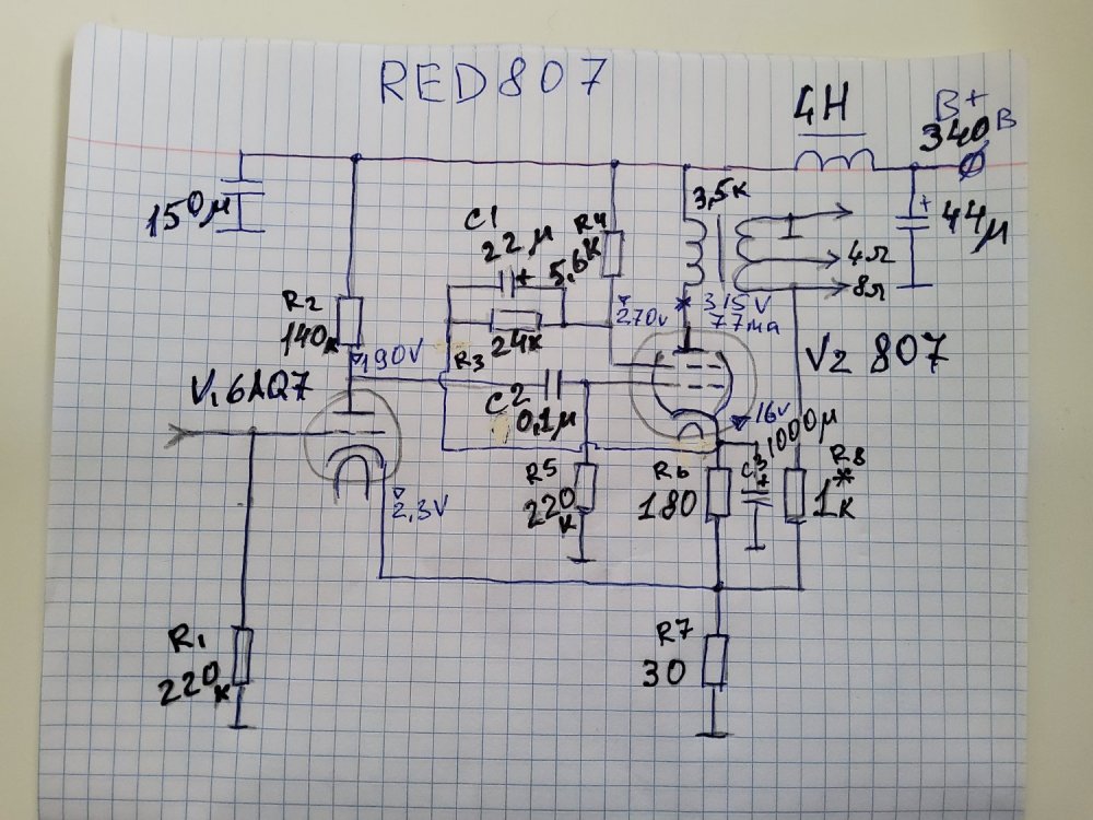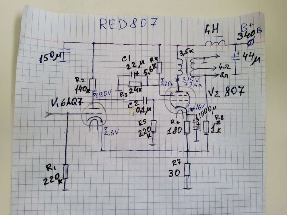 1. Минус С3 на "земле", а вот с минусом С1, ошибочка, он подключен к катоду 807, позже перерисую. 2. Изначально было 2х22мкф, после введения ПОС на (инфра)НЧ один убрал, так баланс на моих АС более естественный. 3. Спорный вопрос. Если бы я качал триод, я бы выбрал гридлик поболее, насколько позволяет даташит. В случае с реально высокоомным входом экранированной лампы, лучше разумно подшунтировать разделительный конденсатор. Меньше звона-меньше грязи.