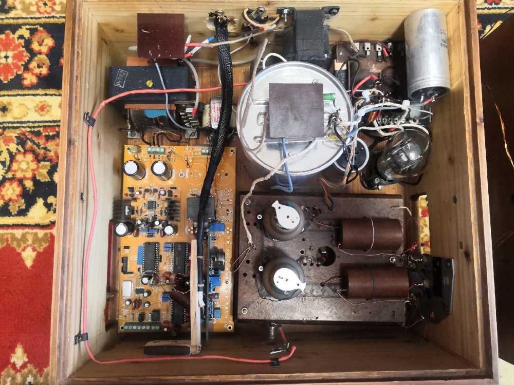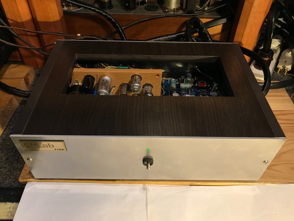 3. В продолжении : ДАК иногда бывает двухблочным - и отдельный блок - это ламповый буфер Дака , его выходная часть с трансформаторным выходом . Сам чип - ВВрсм 63KY . Внутреннее построение -отражение идеологии : оптимальный баланс миксов новодельной элемент . базы (блек гейты, тантал , Дуэленд и прочее) и винтажно-раритетной- Драловид, Bosch , довоенные (в 2-х блочном ) лампы Телефункен : AF7 , EF14, AZ1. Первое фото - ""бюджетный"" дак , второй (двухблочный) , уже не бюджетный.